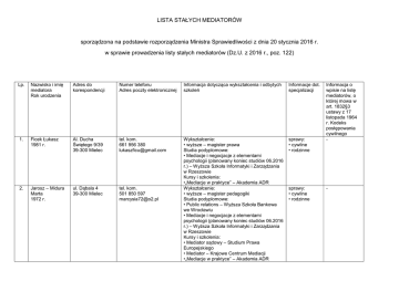 LISTA STAŁYCH MEDIATORÓW sporządzona na podstawie