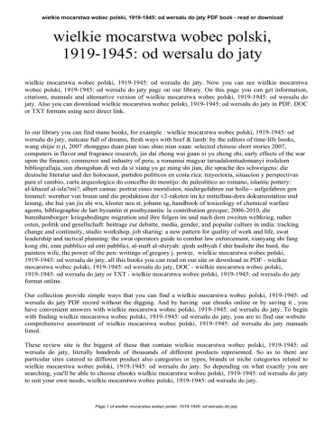 wielkie mocarstwa wobec polski, 1919-1945: od wersalu do jaty PDF book - read or download wielkie mocarstwa wobec polski, 1919-1945: od wersalu do jaty wielkie mocarstwa wobec polski, 1919-1945: od wersalu do jaty. Now you can see wielkie mocarstwa wobec polski, 1919-1945: od wersalu do jaty page on our library. On this page you can get information, citations, manuals and alternative version of wielkie mocarstwa wobec polski, 1919-1945: od wersalu do jaty. Also you can download wielkie mocarstwa wobec polski, 1919-1945: od wersalu do jaty in PDF, DOC or TXT formats using next direct link. In our library you can find mane books, for example : wielkie mocarstwa wobec polski, 1919-1945: od wersalu do jaty, suitcase full of dreams, fresh ways with beef & lamb: by the editors of time-life books, wang shijie ri ji, 2007 zhongguo duan pian xiao shuo nian xuan: selected chinese short stories 2007, computers in flavor and fragrance research, jin dai zhong wai guan xi yu zheng zhi, early effects of the war upon the finance, commerce and industry of peru, a romaniai magyar tarsadalomtudomanyi irodalom bibliografiaja, sun zhongshan di wei da si xiang yu ge ming shi jian, die sprache des schweigens: die deutsche literatur und der holocaust, partidos politicos en costa rica: trayectoria, situacion y perspectivas para el cambio, carta arqueologica do concelho do montijo: do paleolitico ao romano, islamic pottery: al-khazaf al-isla?mi?, albert camus: portrat eines moralisten, niedergefahren zur holle-- aufgefahren gen himmel: wernher von braun und die produktion der v2-raketen im kz mittelbau-dora dokumentation und lesung, she hui yan jiu shi wu, kloster neu st. johann sg, handbook of toxicology of chemical warfare agents, bibliographie de lart byzantin et postbyzantin: la contribution grecque, 2006-2010, die butenhamborger: kriegsbedingte migration und ihre folgen im und nach dem zweiten weltkrieg, naher osten, politik und gesellschaft: beitrage zur debatte, media, gender, and popular culture in india: tracking change and continuity, studio workshop, job sharing: a new pattern for quality of work and life, swat leadership and tactical planning: the swat operators guide to combat law enforcement, xianyang shi fang kong zhi, ente pubblico ed enti pubblici, al-maft al-shiryah: qirah uslbyah f shir bashshr ibn burd, the painters wife, the power of the pen: writings of gregory j. power, wielkie mocarstwa wobec polski, 1919-1945: od wersalu do jaty, all this books you can read on our site or download in PDF - wielkie mocarstwa wobec polski, 1919-1945: od wersalu do jaty, DOC - wielkie mocarstwa wobec polski, 1919-1945: od wersalu do jaty or TXT - wielkie mocarstwa wobec polski, 1919-1945: od wersalu do jaty format online. Our collection provide simple ways that you can find a wielkie mocarstwa wobec polski, 1919-1945: od wersalu do jaty PDF record without the digging. And by having our ebooks online or by saving it , you have convenient answers with wielkie mocarstwa wobec polski, 1919-1945: od wersalu do jaty. To begin with finding wielkie mocarstwa wobec polski, 1919-1945: od wersalu do jaty, you are to find our website comprehensive assortment of wielkie mocarstwa wobec polski, 1919-1945: od wersalu do jaty manuals listed. These review site is the biggest of these that contain wielkie mocarstwa wobec polski, 1919-1945: od wersalu do jaty, literally hundreds of thousands of different products represented. So as to there are particular sites catered to different product also categories or types, brands or niche categories related to wielkie mocarstwa wobec polski, 1919-1945: od wersalu do jaty. So depending on what exactly you are searching, you'll be able to choose ebooks wielkie mocarstwa wobec polski, 1919-1945: od wersalu do jaty to suit your own needs, wielkie mocarstwa wobec polski, 1919-1945: od wersalu do jaty. Page 1 of wielkie mocarstwa wobec polski, 1919-1945: od wersalu do jaty