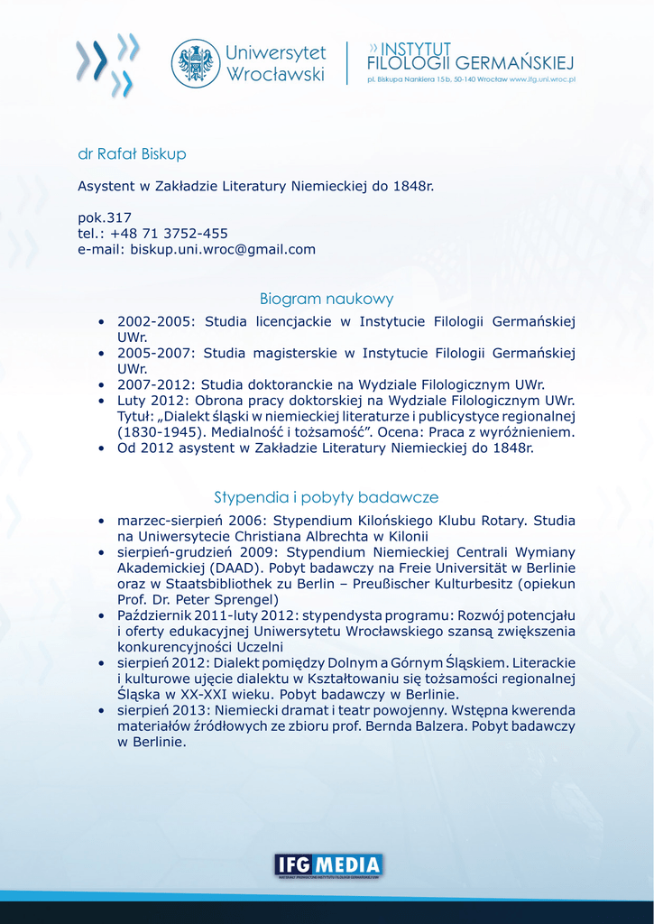 Pełny Biogram - Instytut Filologii Germańskiej UWr