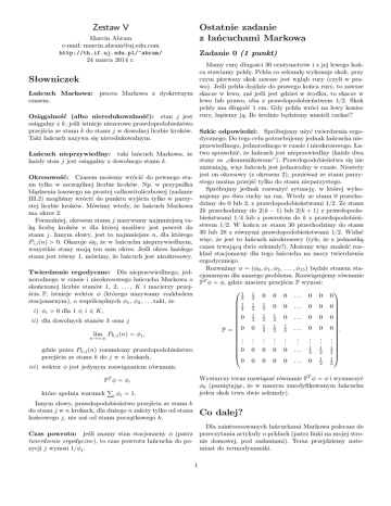 Zestaw V Słowniczek Ostatnie zadanie z łańcuchami Markowa Co