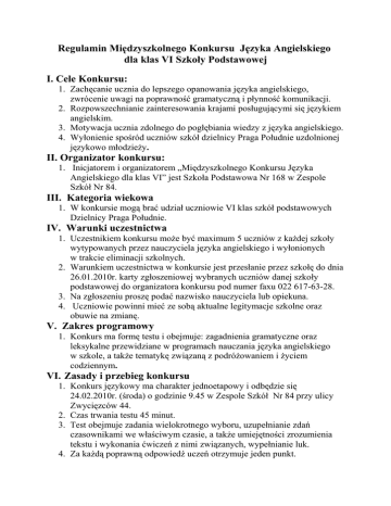 Regulamin Międzyszkolnego Konkursu Języka Angielskiego dla