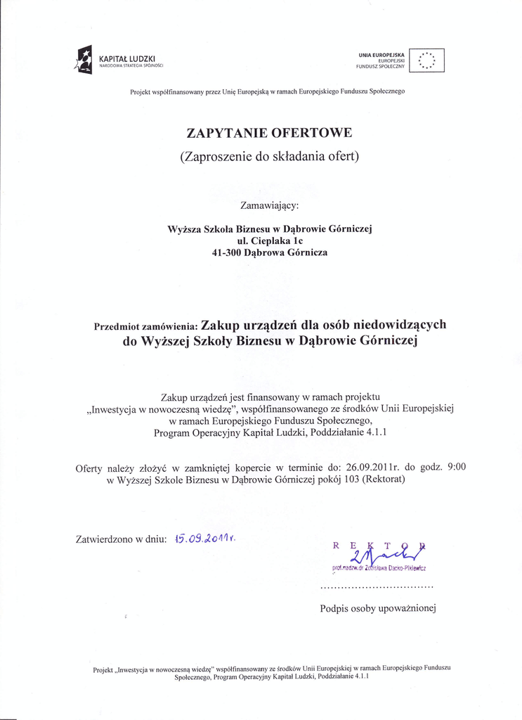 Zapytanie ofertowe - Wyższa Szkoła Biznesu w Dąbrowie Górniczej