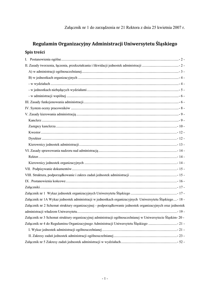Regulamin Organizacyjny Administracji Uniwersytetu Śląskiego