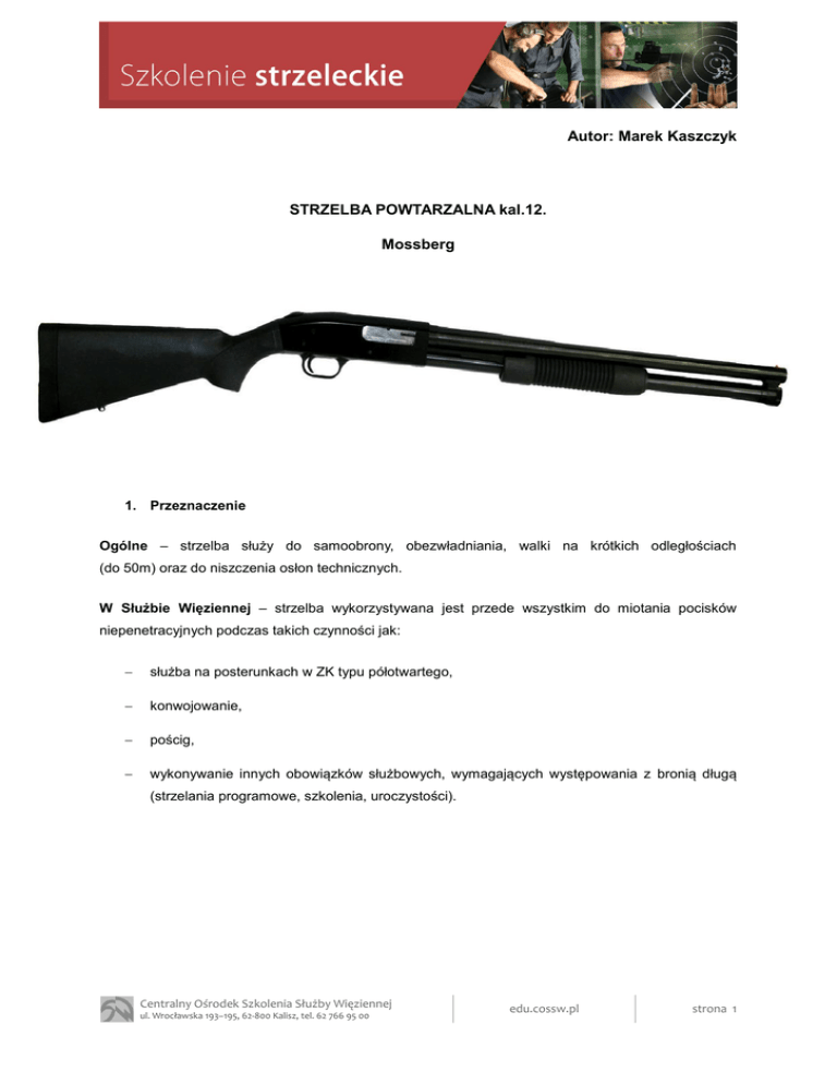 Autor: Marek Kaszczyk STRZELBA POWTARZALNA kal.12. Mossberg