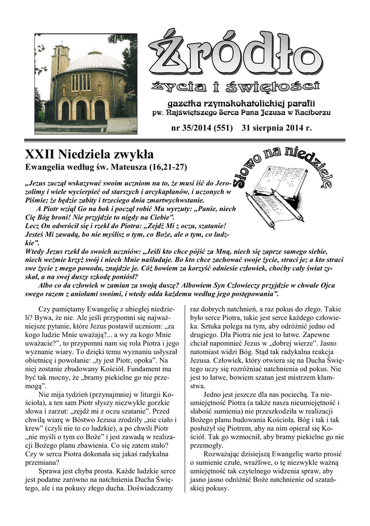 "Źródło" 31.08.2014 (nr 551) - Strona Parafii NSPJ w Raciborzu