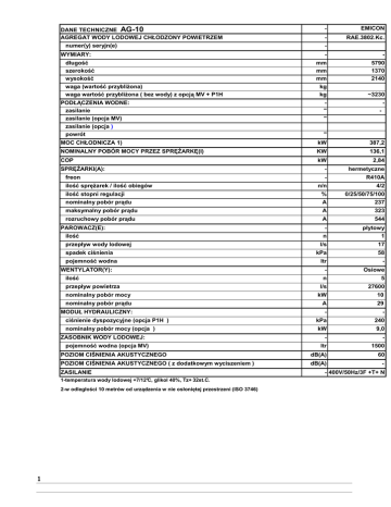 DANE TECHNICZNE AG-10 - EMICON AGREGAT WODY