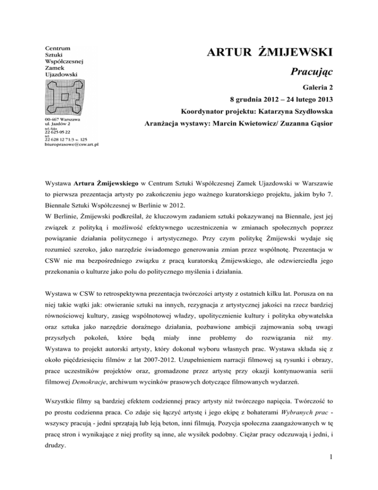 nota prasowa, PDF - Centrum Sztuki Współczesnej Zamek Ujazdowski