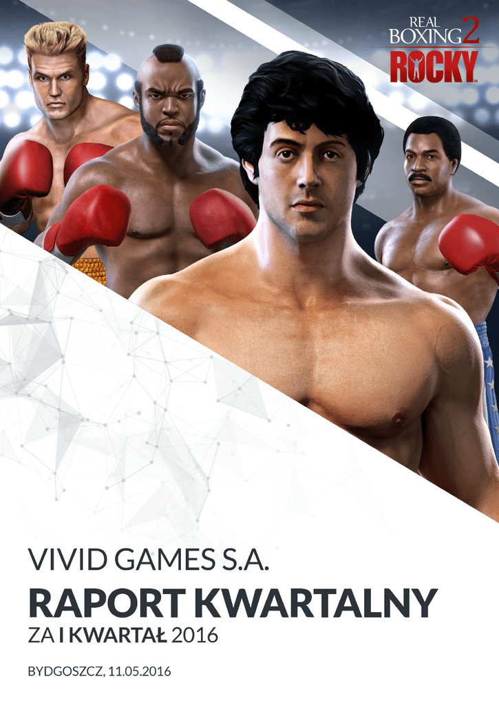 SPIS TREŚCI PISMO ZARZĄDU .......................................................................................................................................... 3 PODSTAWOWE INFORMACJE O SPÓŁCE ............................................................................................................ 4 WŁADZE SPÓŁKI NA DZIEŃ SPORZĄDZENIA RAPORTU .......................................................................................... 5 ZARZĄD ...................................................................................................................................................... 5 RADA NADZORCZA ....................................................................................................................................... 5 SKRÓCONE SKONSOLIDOWANE SPRAWOZDANIE FINANSOWE GRUPY VIVID GAMES S.A. ............................................ 6 SKRÓCONE JEDNOSTKOWE SPRAWOZDANIE FINANSOWE VIVID GAMES S.A. .......................................................... 23 KOMENTARZ ZARZĄDU NA TEMAT CZYNNIKÓW I ZDARZEŃ, KTÓRE MIAŁY WPŁYW NA OSIĄGNIĘTE WYNIKI FINANSOWE 38 INFORMACJA ODNOŚNIE PROGNOZ FINANSOWYCH .......................................................................................... 40 STRUKTURA AKCJONARIATU NA DZIEŃ SPORZĄDZENIA NINIEJSZEGO RAPORTU ...................................................... 41 INFORMACJE DOTYCZĄCE LICZBY OSÓB ZATRUDNIONYCH PRZEZ EMITENTA ........................................................... 43 OŚWIADCZENIE ZARZĄDU DOTYCZĄCE INFORMACJI ZAWARTYCH W NINIEJSZYM RAPORCIE ...................................... 44 www.vividgames.com 2|Strona PISMO ZARZĄDU Szanowni Akcjonariusze i Inwestorzy. W I kwartale 2016 roku Grupa Vivid Games osiągnęła 6,6 mln PLN przychodu ze sprzedaży co stanowi wzrost o 35% w stosunku do analogicznego okresu w 2015 roku. Wynik EBITDA za I kwartał 2016 roku ukształtował się na poziomie 1,8 mln PLN, a osiągnięta marża EBITDA wyniosła 56%. Zysk netto za I kwartał 2016 roku wyniósł 0,13 mln PLN. W raportowanym okresie marka Real Boxing trafiła do 4,5 mln graczy, realizując 3,1 mln PLN przychodu. Pod koniec marca do sprzedaży trafiła aktualizacja Real Boxing 2 Rocky™ wprowadzająca do markę ROCKY. Dzięki nowej treści, modyfikacjom oraz optymalizacji udało się w kwietniu dwukrotnie poprawić parametr monetyzacji ARPMAU do wartości $0,22 wobec $0,11 średnio w I kwartale 2016 oraz IV kwartale 2015 roku. Realizując konsekwentnie przyjętą strategię prowadzimy działania związane z produkcją własnych oraz pozyskiwaniem zewnętrznych tytułów, poprawą mechanizmów monetyzacji i analityki jak również rozwojem niezbędnych technologii. Naszym nadrzędnym celem jest zbudowanie do 2020 roku szerokiego, spójnego portfolio gier mobilnych co z zapewni nam dywersyfikację portfela, jak również znaczący wzrost przychodów i zysków. W imieniu Zarządu Remigiusz Kościelny Prezes Zarządu www.vividgames.com Jarosław Wojczakowski Roy Huppert Wiceprezes Zarządu Członek Zarządu 3|Strona PODSTAWOWE INFORMACJE O SPÓŁCE Firma: Siedziba: Adres: Vivid Games Spółka Akcyjna Bydgoszcz ul. Gdańska 160, 85-674 Bydgoszcz Telefon: +48 883 321 079 Faks: +48 52 5222130 Adres poczty elektronicznej: [email protected] Strona internetowa: www.vividgames.pl NIP: Regon: KRS: 9671338848 340873302 0000411156 Sąd rejestrowy: Sąd Rejonowy w Bydgoszczy, XIII Wydział Gospodarczy KRS Data rejestracji: 20 lutego 2012 r. Vivid Games jest jednym z najnowocześniejszych, niezależnych studiów deweloperskich w Europie i największą firmą produkującą gry na urządzenia mobilne w Polsce. Spółka założona w 2006 roku nieustannie zwiększa skalę swojej działalności, aktualnie zatrudniając i współpracując z ponad 115 wysokiej klasy specjalistami. Coraz większy sukces komercyjny oraz przemyślana, konsekwentnie realizowana strategia przyciąga uwagę rynku kapitałowego. Grupę kapitałową Vivid Games S.A. tworzą oprócz Emitenta 3 Spółki zależne, których działalność pełni funkcje wspierające. W czerwcu 2012 roku, Spółka z powodzeniem zadebiutowała na rynku NewConnect. Na przełomie czerwca i lipca 2015 r. Spółka przeprowadziła emisję publiczną 2.000.000 akcji serii D, za łączną wartość nabycia 10 mln PLN. Kapitał zakładowy wynosi obecnie 2 794 546,50 PLN i dzieli się na 16 500 000 akcji zwykłych na okaziciela serii A, 8 800 000 akcji zwykłych na okaziciela serii B, 295 465 akcji zwykłych na okaziciela serii C, 2 000 000 akcji zwykłych na okaziciela serii D i 349 000 akcji zwykłych na okaziciela serii E o wartości nominalnej 0,10 zł każda akcja. Vivid Games S.A. znajduje się w gronie Spółek indeksów NCIndex30 i NC Lead. Kluczowym elementem strategii Vivid Games jest produkcja i publikacja zaawansowanych gier mobilnych segmentu mid-core w modelu free-to-play. Największą marką jest Real BoxingTM, który trafił do 37 mln odbiorców, a którego kontynuacja zadebiutowała w listopadzie 2015 roku na platformach mobilnych W marcu 2016 roku rozpoczęto dystrybucję aktualizacji zmieniającej nazwę gry na Real Boxing 2: Rocky. Strategia Spółki obejmuje dywersyfikację przychodów m.in. poprzez poszerzenie portfolio produktów. Celem Spółki jest zbudowanie portfela spójnych technologicznie i jakościowo gier freeto-play oraz umocnienie pozycji na rynku poprzez zwiększenie liczby użytkowników oraz optymalizację możliwości monetyzacyjnych. www.vividgames.com 4|Strona WŁADZE SPÓŁKI NA DZIEŃ SPORZĄDZENIA RAPORTU ZARZĄD Imię i Nazwisko Remigiusz Kościelny Jarosław Wojczakowski Roy Huppert Funkcja Data rozpoczęcia obecnej kadencji Data zakończenia obecnej kadencji Prezes Zarządu 20 lutego 2012 r. 19 lutego 2017 r. Wiceprezes Zarządu 20 lutego 2012 r. 19 lutego 2017 r. Członek Zarządu 12 września 2014 r. 11 września 2019 r. Tabela.1. Skład Zarządu na dzień 11.05.2016 r. RADA NADZORCZA Imię i Nazwisko Funkcja Dat