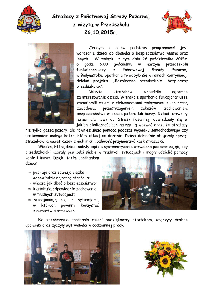 Straż pożarna w przedszkolu - Przedszkole Samorządowe nr 31 w