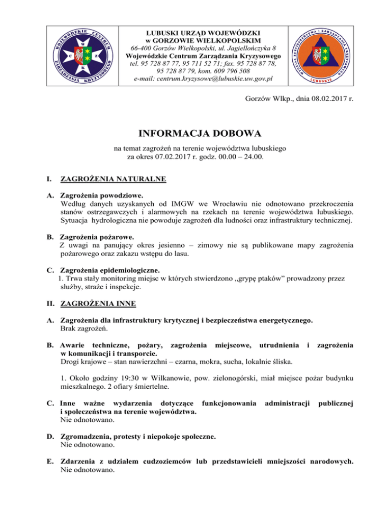 informacja dobowa - Lubuski Urząd Wojewódzki