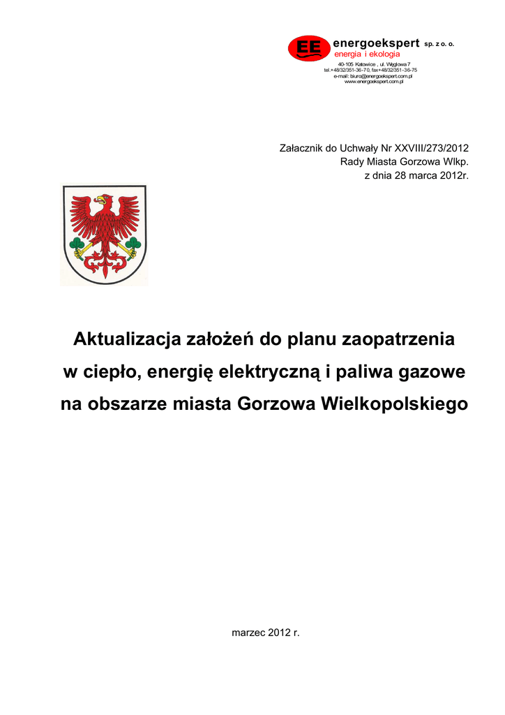EE energoekspert sp. z o. o. energia i ekologia 40-105 Katowice , ul. Węglowa 7 tel.+48/32/351-36-70, fax+48/32/351-36-75 tel.fax +048 / 32 / 250-37-33, 250-46-62 e-mail: [email protected] www.energoekspert.com.pl Załacznik do Uchwały Nr XXVIII/273/2012 Rady Miasta Gorzowa Wlkp. z dnia 28 marca 2012r. Aktualizacja założeń do planu zaopatrzenia w ciepło, energię elektryczną i paliwa gazowe na obszarze miasta Gorzowa Wielkopolskiego marzec 2012 r. EE energoekspert energia sp. z o. o. i ekologia Zespół projektantów dr inż. Adam Jankowski – dyrektor do spraw produkcji mgr inż. Anna Szembak – kierownik projektu mgr inż. Marta Szawracka mgr Krzysztof Kupczyk inż. Alicja Plebankiewicz mgr Sabina Sierzyńska mgr inż. Zbigniew Przedpełski mgr inż. Andrzej Mizera mgr inż. Marian Surowiec mgr Marcin Całka Sprawdzający: mgr inż. Józef Bogalecki Aktualizacja założeń do planu zaopatrzenia w ciepło, energię elektryczną i paliwa gazowe na obszarze miasta Gorzowa Wlkp. 2 EE energoekspert energia sp. z o. o. i ekologia Spis treści I. WPROWADZENIE .......................................................................................................... 7 1. Podstawa opracowania, charakter i zakres dokumentu .................................................. 7 2. Planowanie energetyczne na szczeblu gminnym – zasady kształtowania gospodarki energetycznej w mieście ............................................................................................... 11 3. Charakterystyka miasta ................................................................................................. 13 3.1 Położenie geograficzne, główne formy zagospodarowania .................................. 13 3.2 Warunki klimatyczne ............................................................................................. 13 3.3 Ludność i zasoby mieszkaniowe........................................................................... 15 3.4 Sektor usługowo-wytwórczy.................................................................................. 17 3.5 Podział na jednostki bilansowe ............................................................................. 17 3.6 Utrudnienia terenowe w rozwoju systemów energetycznych ................................ 22 3.7 Lokalne dokumenty strategiczne i planistyczne .................................................... 24 II. CHARAKTERYSTYKA STANU ISTNIEJĄCEGO ZAOPATRZENIA GMINY W NOŚNIKI ENERGII – BILANS ZAPOTRZEBOWANIA CIEPŁA, ENERGII ELEKTRYCZNEJ I PALIWA GAZOWEGO, ŹRÓDŁA I DYSTRYBUCJA................................................... 34 4. PGE Górnictwo i Energetyka Konwencjonalna S.A. Oddział Elektrociepłownia Gorzów– charakterystyka ............................................................................................................. 34 5. Zaopatrzenie Miasta w ciepło ........................................................................................ 44 5.1 Źródła ciepła na terenie Miasta............................................................................. 44 5.1.1 Źródła systemowe ........................................................................................ 44 5.1.2 Kotłownie lokalne.......................................................................................... 44 5.1.3 Źródła indywidualne – niska emisja .............................................................. 45 5.2 Charakterystyka systemu ciepłowniczego ............................................................ 46 5.3 Zapotrzebowanie ciepła i sposób pokrycia - bilans stanu istniejącego ................. 49 5.4 Plany rozwoju przedsiębiorstw energetycznych.................................................... 52 5.5 Ocena stanu istniejącego systemu zaopatrzenia w ciepło .................................... 53 6. System elektroenergetyczny ......................................................................................... 55 6.1 Wprowadzenie – charakterystyka przedsiębiorstw – zmiany formalne ................. 55 6.1.1 Przedsiębiorstwa energetyczne zajmujące się wytwarzaniem energii elektrycznej .................................................................................................. 55 6.1.2 Przedsiębiorstwa energetyczne zajmujące się przesyłaniem energii elektrycznej .................................................................................................. 55 6.1.3 Przedsiębiorstwa energetyczne zajmujące się dystrybucją energii elektrycznej .................................................................................................. 56 6.1.4 Przedsiębiorstwa energetyczne zajmujące się obrotem energią elektryczną57 6.2 System zasilania miasta ....................................................................................... 59 6.2.1 Źródła, GPZ-ty i linie NN i WN..................................................................... 59 6.2.2 Linie SN i stacje transformatorowe ............................................................... 62 6.2.3 Linie nN ........................................................................................................ 62 6.3 Odbiorcy i zużycie energii elektrycznej ................................................................. 63 6.4 Sieci oświetlenia drogowego................................................................................. 65 6.5 Plany rozwoju przedsiębiorstw energetycznych.................................................... 66 Aktualizacja założeń do planu zaopatrzenia w ciepło, energię elektryczną i paliwa gazowe na obszarze miasta Gorzowa Wlkp. 3 EE energoekspert energia sp. z o. o. i ekologia 6.6 Ocena stanu zaopatrzenia w energię elektryczną................................................. 68 7. System zaopatrzenia w gaz ziemny .............................................................................. 72 7.1 Wprowadzenie – charakterystyka przedsiębiorstw – zmiany formalne