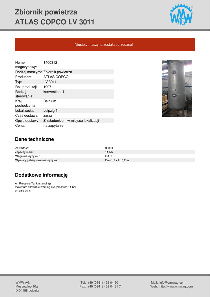 Zbiornik powietrza - ATLAS COPCO LV 3011