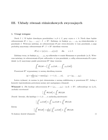 e co przeczy intejest rozwiązaniem układu (1). Jest ono właściwym przedłużeniem rozwiązania Φ,