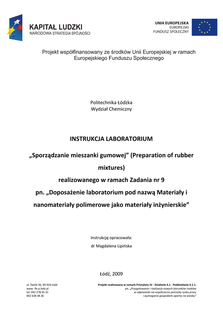 INSTRUKCJA LABORATORIUM „Sporządzanie mieszanki gumowej
