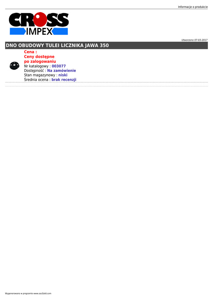 Informacje o produkcie Utworzono 07-03-2017 DNO OBUDOWY TULEI LICZNIKA JAWA 350 Cena : Ceny dostępne po zalogowaniu Nr katalogowy : 003077 Dostępność : Na zamówienie Stan magazynowy : niski Średnia ocena : brak recenzji Wygenerowano w programie www.oscGold.com