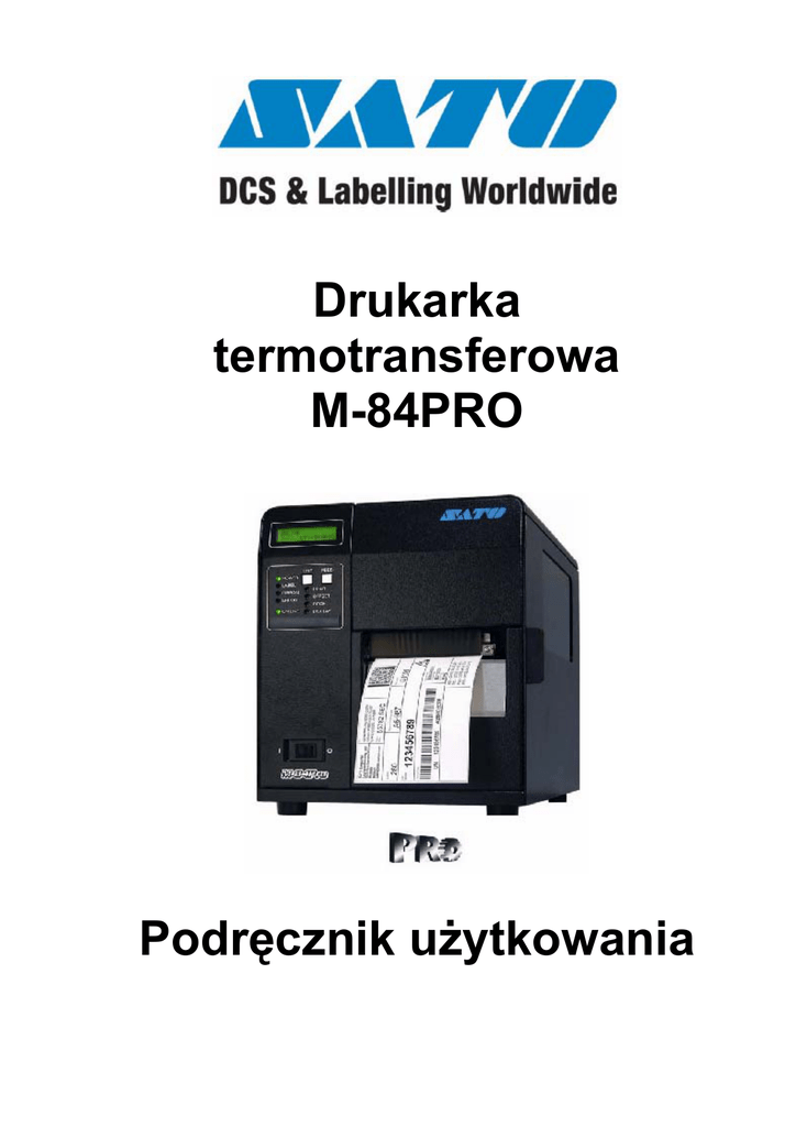 Drukarka termotransferowa M-84PRO Podręcznik użytkowania SATO Group of Companies www.satoworldwide.com SATO INTERNATIONAL PTE LTD SATO EUROPE NV 438A Alexandra Road #05-01/ 02, Leuvensesteenweg 369, Alexandra Technopark, 1932 Sint-Stevens-Woluwe, Brussels, Singapore 119967 Belgium Tel: 65-6271-2122 Tel: 32 (0)-2-788-80-00 Fax: 65-6271-2151 Fax: 32 (0)-2-788-80-80 Email: [email protected] Email: [email protected] SATO UK LTD SATO DEUTSCHLAND GMBH Valley Road, Harwich, Essex England Schaberweg 28, 61348 Co12 4RR, United Kingdom Bad Homburg, Germany Tel: 44-1255-240000 Tel: 49 (0)-6-1726-8180 Fax: 44-1255-240111 Fax: 49 (0)-6-1726-818-199 Email: [email protected] Email: [email protected] SATO POLSKA SP Z O.O. SATO FRANCE S.A. Ul Okolna 2, 50-422 Wroclaw Parc d'activités - rue Jacques Messager Poland 59175 TEMPLEMARS, France Tel: 48-71-335-23-20 Tel: +33 (0)3 20 62 96 40 Fax: 48-71-335-23-25 Fax: +33 (0)3 20 62 96 55 Email: [email protected] Email: [email protected] SATO AMERICA INC. SATO ASIA PACIFIC PTE LTD 10350 Nations Ford Road Suite A, 438A Alexandra Road #05-01/02, Charlotte, NC 28273, USA Alexandra Technopark, Singapore 119967 Tel: 1-704-644-1650 Tel: 65-6271-5300 Fax: 1-704-644-1662 Fax: 65-6273-6011 Email: [email protected] Email: [email protected] Warning: This equipment complies with the requirements in Part 15 of FCC rules for a Class A computing device. Operation of this equipment in a residential area may cause unacceptable interference to radio and television reception requiring the operator to take whatever steps necessary to correct the interference. All rights reserved. This document, nor any part of it, may be reproduced or issued to third parties in any form without the express permission of SATO Europe. The material in this document is provided for general information only and is subject to change without notice. SATO Europe does not assume responsibility for any errors or omissions. Ostrzeżenie Istotne jest, aby procedury związane z bezpieczeństwem i użytkowaniem urządzenia, zawarte w niniejszym podręczniku, zostały przedstawione osobom mogącym używać tej drukarki / wyrobu i były przez nie stosowane. Ta drukarka / wyrób może być używana wyłącznie w celach, dla których została zaprojektowana. Jest to wyrób Klasy A. W niektórych pomieszczeniach wyrób ten może powodować zakłócenia radiowe; w przypadku wystąpienia takich zakłóceń wymagane może być podjęcie przez użytkownika stosownych działań. Wyładowania elektrostatyczne na stykach złączy oraz na karcie pamięci mogą spowodować zniszczenie drukarki. W przypadku pożaru do gaszenia urządzenia nie wolno stosować wody; w pobliżu urządzenia powinna być umieszczona odpowiednia gaśnica, przeznaczona do gaszenia urządzeń elektrycznych. Bez pisemnej zgody SATO Europe NV nie wolno wykonywać jakichkolwiek modyfikacji, mechanicznych lub elektrycznych, drukarki / wyrobu lub wyposażenia. Wszelkie modyfikacje wprowadzone bez takiej zgody mogą spowodować odrzucenie roszczeń z tytułu gwarancji. Inne podręczniki odnoszące się do tej drukarki zawierają informacje dodatkowe związane z innymi aspektami bezpiecznego użytkowania drukarki i są dostępne u lokalnego dostawcy SATO. Wszelkie odpady materiałów eksploatacyjnych, takie jak papier podłożowy i zużyte taśmy węglowe, powinny zostać usunięte w sposób zapewniający jak najmniejsze zanieczyszczenie środowiska. W przypadku jakichkolwiek wątpliwości dotyczących ustawień, użytkowania lub bezpieczeństwa, związanych z tą drukarką / wyrobem, prosimy skontaktować się z lokalnym dostawcą SATO. SATO Europe NV nie gwarantuje w żaden sposób, że wszystkie cechy wyrobu opisane w niniejszym podręczniku są dostępne we wszystkich modelach. Ponadto, z uwagi na politykę nieustannego rozwoju i ulepszania wyrobów firmy SATO, specyfikacje mogą ulec zmianie bez powiadomienia. SATO M-84PRO iii Materiały eksploatacyjne Należy zawsze stosować taśmy węglowe produkcji firmy SATO lub równoważne. Zastosowanie niewłaściwych materiałów może spowodować nieprawidłowe działanie drukarki i utratę uprawnień gwarancyjnych. Konwencje Tekst napisany pogrubioną kursywą i dużymi literami, taki jak ETYKIETY, odnosi się do klawisza lub diody LED na panelu operacyjnym. Tekst umieszczony w nawiasach, taki jak <ESC> odnosi się do sekwencji Escape ciągu danych. Tekst napisany pogrubioną kursywą, taki jak On-Line, odnosi się do funkcji lub do wyniku. Tekst pogrubiony, taki jak VR1, odnosi się do elementów elektrycznych, takich jak piny, złącza rezystorów i tak dalej. Gwarancja i Prawa autorskie SATO Europe NV nie daje żadnej gwarancji jakiegokolwiek rodzaju w odniesieni do niniejszego materiału, w tym, ale nie wyłącznie, dorozumianych gwarancji dotyczących możliwości sprzedaży i przydatności do określonego celu. SATO Europe NV nie ponosi odpowiedzialności za błędy w niniejszym materiale i za jakiekolwiek wynikłe w związku z dostarczeniem, wykonaniem lub wykorzystaniem niniejszego materiału. Niniejszy dokument zawiera informacje prawnie zastrzeżone i jest chroniony przez prawa autorskie. Wszelkie prawa zastrzeżone. Żadna część niniejszego dokumentu nie może być reprodukowana ani przekazywana osobom trzecim w jakiejkolwiek formie bez wyraźnej zgody SATO Europe NV. Informacje zawarte w niniejszym dokumencie mogą ulec zmianie bez powiadomienia. © 2003 SATO Europe NV. SATO M-84PRO iv SPIS TREŚCI SEKCJA 1. OMÓWIENIE DRUKARKI 1-1 Wprowadzenie Ogólne dane techniczne drukarki Czcionki Kody kreskowe Właściwości fizyczne Akcesoria opcjonalne 1-1 1-2 1-3 1-4 1-4 1-5 SEKCJA 2. INSTALACJA Wprowadzenie Ustawianie drukarki ładowanie etykiet i przywieszek Ładowanie taśmy Panel operatora Panel tylny Czujniki SEKCJA 3. KONFIGURACJA Konfiguracja przełączników DIP drukarki Ustawienia domyślne Ustawienia potencjometrów Konfiguracja drukarki z panelu LCD SEKCJA 4. CZYSZCZENIE 2-1 2-1 2-1 2-3 2-