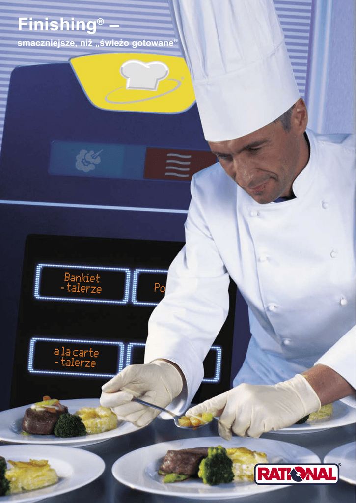 Finishing® – smaczniejsze, niż „świeżo gotowane” Bankiet - talerze a la carte - talerze Po Finishing® – nowy wymiar przyrządzania potraw W codziennej praktyce kuchennej dania są zazwyczaj przetrzymywane w cieple – w szafce termoizolacyjnej albo w podgrzewanej gablocie. Przetrzymywanie w cieple powoduje pogorszenie jakości, niepożądane rozmiękanie. Proces Finishing® w SelfCooking Center® firmy RATIONAL ostatecznie kończy epokę przetrzymywania potraw w cieple. Niezależnie od tego, czy przygotowany ma być jeden, dziesięć czy kilka tysięcy posiłków, wszystkie zostaną przyrządzone bez stresu i pośpiechu, dokładnie, jak zostało to określone. Rozpoczyna się od przyrządzenia potrzebnych potraw dokładnie wtedy, gdy ma się na to czas: rano, wczesnym popołudniem, albo któregoś z poprzedzających dni. Likwiduje to konieczność zatrudniania dodatkowych ludzi, znikają nadgodziny. Zaraz po przygotowaniu w SelfCooking Center® potrawy zostają schłodzone – hamuje to niepożądane zmiany w strukturze produktów, wynikające z „dalszego gotowania się”. Jakość potraw „zatrzymuje się” na najwyższym poziomie. Poddanie tuż przed podaniem potraw procesowi Finishing® w SelfCooking Center® powoduje, że zostaną one w ściśle przemyślany sposób doprowadzone do perfekcyjnej jakości. Czy istnieje lepsza rekomendacja niż zadowolony gość? Bankiet - talerze a la carte - talerze Pojemniki z sondą Finishing® à la carte – smaczniejsze, niż „świeżo gotowane” Finishing® w SelfCooking Center® jest perfekcyjnym rozwiązaniem w przypadku pracy w systemie à la carte. Kucharz z dwoma pomocnikami może przyrządzić do jednorazowego wydania nawet 150 posiłków, bez stresu i pośpiechu - wystarczy nacisnąć jeden przycisk. Przygotowane wcześniej składniki dań są do naszej dyspozycji w stanie schłodzonym. Dopiero w chwili złożenia zamówienia są starannie układane na talerzu – na zimno. Skomponowane dania poddajemy procesowi Finishing® w SelfCooking Center®. Oczywiście można także przyrządzić np. produkty krótko smażone à la minute i dodać do nich dodatki poddane procesowi Finishing®. Przed serwowaniem dodaje się jeszcze sos i garniruje dania. Potrawy, doprowadzone za pomocą Finishing® do idealnego stanu trafiają świeże, na gorących talerzach na stół. Od momentu skomponowania dań do ich zaserwowania minie jedynie osiem minut, a Państwa goście będą zachwyceni jakością potraw. Dzięki funkcji LevelControl® nawet w godzinach szczytu SelfCooking Center® całkowicie panuje nad sytuacją. Każda półka jest osobno nadzorowana. LevelControl® automatycznie informuje (brzęczyk), kiedy dany talerz jest gotowy – jest to funkcja niedostępna w żadnym innym urządzeniu na świecie. Przygotowanie Układanie na talerzu na zimno Finishing® Finishing® sprawia, że imprezy są przyjemnością – także dla organizatora! O czym będzie się mówić, wspominając po latach imprezę? O jakości jedzenia. Niezależnie od tego, czy wydaje się potrawy na talerzach czy w systemie bufetowym, Finishing® w SelfCooking Center® gwarantuje na każdej imprezie najwyższą, niezmienną jakość. Przy podawaniu na talerzach, w zależności od spodziewanej liczby gości, układa się zimne składniki potraw na talerzach i przechowuje je w chłodni na specjalnych stelażach ruchomych. Tuż przed podaniem talerze umieszczamy w urządzeniu SelfCooking Center® i dzięki funkcji Finishing®, w krótkim czasie, mamy do dyspozycji dowolną ilość gotowych do zaserwowania dań, niezależnie czy ma być ich dwadzieścia, czy kilka tysięcy - bez stresu, bez dodatkowego personelu. Daje to ogromną swobodę i pozwala ze spokojem reagować na typowe dla imprez przesunięcia w programie. Także organizacja bufetu staje się dziecinną igraszką. Już przyrządzone i ułożone na zimno w pojemnikach potrawy doprowadza się do idealnego stanu w SelfCooking Center® za pomocą funkcji Finishing®. W zależności od zapotrzebowania, w bardzo krótkim czasie można przygotować do wydawania kolejne pojemniki – w miejscu wydawania potrawy są zawsze gorące i mają najwyższą jakość, całkowicie odpada konieczność długiego przetrzymywania w cieple. Przygotowanie Układanie na talerzach na zimno Finishing® Wyjątkowe sterowanie punktem rosy w urządzeniach RATIONAL Na powierzchni produktów powstaje warstwa ochronna z mikroskopijnej wielkości kropelek wody i osłania je dokładnie niczym „druga skóra”. Zapobiega to powstawaniu uciążliwych „kałuż” wody ze skondensowanej pary. Automatyka SelfCooking Control® w każdej sekundzie ustala, jakie działania należy podjąć i decyduje o optymalnym przebiegu procesu Finishing®. Wydawanie Finishing® w żywieniu zbiorowym – przekonująca świeżość Niezależnie od tego, czy stosowany w cateringu, żywieniu pracowników, szkole, szpitalu czy domu spokojnej starości, Finishing® zawsze jest idealnym rozwiązaniem, pozwalającym na oferowanie dużej ilości posiłków z zapewnieniem ich różnorodności i wysokiej jakości. Dzięki Finishing® całkowicie odpada konieczne dotychczas przetrzymywanie w cieple, powodujące wyraźny spadek jakości. Przyrządzone w SelfCooking Center® potrawy są układane na zimno w pojemnikach i przechowywane w chłodni. Dokładnie w chwili zapotrzebowania doprowadza się je do idealnego stanu. Za pomocą Finishing® w bardzo krótkim czasie można przygotować do wydawania kolejne potrawy – w miejscu wydawania jedzenie jest zawsze ciepłe. Finishing® za każdym razem przebiega inaczej. Proces Finishing® jest w pełni automatycznie dopasowywany do wymogów dania, zawsze osiągana jest jakość na najwyższym poziomie. Za pomocą Finishing® przygotowuje się dokładnie tyle posiłków, ile jest potrzebne. Całkowicie odpadają koszty związane z nadmierną produkcją. Pojemniki z sondą suche gorące Przygotowanie Schładzanie Finishing