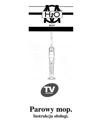 Parowy mop. Instrukcja obsługi. Szanowni Państwo, Dziękujemy i gratulujemy wyboru H2O Steam Mop. Urządzenie to stanowi nową, bardziej efektywną i higieniczną metodę czyszczenia, niż konwencjonalne metody. H2O Stam Mop charakteryzuję się wysokim poziomem higieniczności dzięki zamienianiu wody w parę przy użyciu materiału czyszczącego zbudowanego z mikrowłókna, który zwiększa chłonność. W momencie kontaktu urządzenia z powierzchnią podłogi nieczystości i brud znikają w przeciągu kilu sekund. H2O Steam Mop jest przyjazny środowisku, ponieważ zamiast detergentów używa czynnej siły pary wodnej. Do urządzenia wlewamy wodę z kranu. Mieszkańcy mający dostęp jedynie do twardej wody powinni używać wody destylowanej dla lepszego rezultatu. Urządzenie używane poprawnie zabija roztocza i niektóre typy bakterii. Życzymy zadowolenia z dokonanego zakupu ! Przed użyciem należy zapoznać się z instrukcją obsługi. Używać jedynie w sposób w jaki zalecono. UWAGA! o JEŻELI UŻYWASZ H2O DWA RAZY W TYGODNIU TYGODNIU LUB CZĘŚCIEJ ZALECA SIĘ WYMIANĘ FILTRA CO 6 MIESIĘCY. W PRZECIWNYM RAZIE URZĄDZENIE ZEPSUJE SIĘ, A USTERKA TA NIE BĘDZIE PODLEGAŁA WARUNKOM REKLAMACJI. o JEŻELI STWIERDZISZ, ŻE URZĄDZENIE PRZESTAJE DOKŁADNIE CZYŚCIĆ , W TAKIM PRZYPADKU ZALECA SIĘ WCZEŚNIEJSZĄ WCZEŚNIEJSZĄ WYMIANĘ FILTRA o PRZYSTĘPUJ DO PRACY DOPIERO W MOMENCIE ZAPALENIA SIĘ ZIELONEJ LAMPKI. LAMPKI o SKONTAKTUJ SIĘ Z PRODUCENTEM POWIERZCHNI, KTÓRĄ CHCESZ WYCZYŚCIĆ I UPEWNIJ SIĘ, ŻE MOŻE BYĆ ONA CZYSZCZONA ZA POMOCĄ PARY. o NIE UMIESZCZAJ W MOPIE DETERGENTÓW DETERGENTÓW CZYSZCZĄCYCH. DODANIE DETERGENTÓW SPRAWI, ŻE FUNKCJONOWANIE URZĄDZENIA NIE BĘDZIE BEZPIECZNE I MOŻE USZKODZIĆ PRZYRZĄD. o DO URZĄDZENIA WLEWAJ WODĘ Z KRANU. MIESZKAŃCY MAJĄCY DOSTĘP JEDYNIE DO TWARDEJ WODY POWINNI UŻYWAĆ WODY DESTYLOWANEJ DLA LEPSZEGO LEPSZEGO REZULTATU. o NAKŁADKA PLASTIKOWA (NIEBIESKI TRÓJKĄT) .PRZEZNACZONA JEST DO CZYSZCZENIA TEKSTYLNYCH POWIERZCHNI. NIE NALEŻY UŻYWAĆ PLASTIKOWEJ NAKŁADKI DO CZYSZCZENIA PARKIETÓW, LINOLEUM I INNYCH PODOBNYCH POWIERZCHNI PONIEWAŻ SPOWODUJE TO ICH ZNISZCZENIE LUB/I PORYSOWANIE. PLASTIKOWA TRÓJKĄTNA NAKŁADKA POMAGA OSIĄGNĄĆ LEPSZE REZULTATY CZYSZCZENIA WYŁĄCZNIE POWIERZCHNI TEKSTYLNYCH. o CZYSZCZENIE LINOLEUM: JEŚLI NAKŁADKI SĄ ZBYT MOKRE MOGĄ ONE ZNISZCZYĆ CZYSZCZONĄ POWIERZCHNIĘ (MOGĄ SIĘ POJAWIĆ ŚLADY, KTÓRE KTÓRE MOGĄ BYĆ USUNIĘTE PRZEZ POLEROWANIE). RADZIMY UŻYWAĆ MOPA NA LINOLEUM PO WSTĘPNYM PRZEPROWADZENIU PRÓBY NA NIEWIELKIEJ POWIERZCHNI. WYNIK CZYSZCZENIA ZALEŻY OD GRUBOŚCI I WŁAŚCIWOŚCI POWIERZCHNI CZYSZCZONEJ. o OSTROŻNIE CZYŚĆ POWIERZCHNIE DREWNIANE, PARKIETY PARKIETY ORAZ INNE POWIERZCHNIE LAKIEROWANE NIE NALEŻY POZOSTAWIAĆ WŁĄCZONEGO MOPA NA CZYSZCZONEJ POWIERZCHNI PRZEZ DŁUŻSZY CZAS. MOŻE TO USZKODZIĆ CZYSZCZONĄ POWIERZCHNIĘ LUB DOPROWADZIĆ DO JEJ ODKSZTAŁCENIA. o NIE NALEŻY NATOMIAST UŻYWAĆ NA DREWNIANEJ DREWNIANEJ PODŁODZE, PODŁODZE, KTÓREJ ELEMENTY NIE ZOSTAŁY POŁĄCZONE ANI TEŻ POZWALAĆ ABY URZĄDZENIE STAŁO PRZEZ DŁUŻSZY OKRES CZASU CZASU NA JAKIEJKOLWIEK (LUB INNEJ) POWIERZCHNI. o Z POWIERZCHNI, KTÓRE ZOSTAŁY POKRYTE WOSKIEM, W WYNIKU DZIAŁANIA PARY I CIEPŁA WOSK TEN MOŻE ZOSTAĆ USUNIĘTY. USUNIĘTY. o UŻYWAJ JEDYNIE AKCESORIA POLECANE PRZEZ PRODUCENTA. o UŻYWAJ JEDYNIE W SPOSÓB JAKI ZOSTAŁ OPISANY W INSTRUKCJI. Informacje dotyczące bezpieczeństwa. Proszę przeczytać uważnie. Przed użyciem urządzenia czyszczącego należy przeczytać instrukcję w całości. Ostrzeżenie: niebezpieczeństwo poparzenia. Ważne: aby zmniejszyć ryzyko pożaru, porażenia prądem czy urazu: 1. Aby zapewnić ciągłą ochronę przed porażeniem prądem podłączaj urządzenie wyłącznie do gniazdek z właściwym uziemieniem. 2. Sprawdź czy główne napięcie w sieci odpowiada temu wskazanemu na etykiecie informującej, patrz poniżej: 110-120 V, 60HZ, 1500W 220-230V, 50HZ, 1500W 3. Produkt ten przeznaczony jest do użytku domowego. 4. Nie używać na wolnym powietrzu. 5. Nie używaj materiału czyszczącego. Nie używaj (nie włączaj) bez wody w zbiorniku na wodę 6. W czasie czyszczenia MOP musi pozostawać cały czas w ruchu. Pozostawienie H2O Steam Mop w bezruchu może spowodować uszkodzenie czyszczonej powierzchni. 7. Nie zostawiaj włączonego Mopa bez nadzoru. Kiedy urządzenie nie jest używane lub też przed przystąpieniem do przeglądu, Mopa należy wyłączyć, a następnie odłączyć od sieci elektrycznej. 8. Nie pozwól aby urządzenie było używane jako zabawka. Szczególną uwagę należy zwrócić jeśli w pobliżu przebywają dzieci, zwierzęta lub rośliny. 9. Urządzenie to nie jest przeznaczone do użytku przez małe dzieci ani przez osoby schorowane bez nadzoru. 10. Dzieci powinny być pod stałą kontrolą tak aby nie bawiły się urządzeniem. 11. Nigdy nie kieruj strumienia pary w kierunku osób, zwierząt, roślin czy sprzętu zawierającego podzespoły. 12. Nie zanurzaj Mopa w wodzie ani żadnej innej cieczy. 13. Nie używaj jeśli wtyczka lub kabel są uszkodzone. Jeśli Mop nie działa tak jak powinien, został upuszczony lub uszkodzony, pozostawiony został na wolnym powietrzu lub też został zanurzony w wodzie, przed powtórnym użyciem urządzenie należy oddać do dystrybutora. Jeśli kabel elektryczny został uszkodzony musi on zostać wymieniony przez producenta lub osobę wykwalifikowaną aby uniknąć niebezpieczeństwa. 14. Nie ciągnij za kabel, nie noś używając do tego kabla, nie używaj kabla jako uchwytu, nie przytrzaskuj kabla drzwiami, nie przeciągaj kabla po ostrych krawędziach i rogach. Trzymaj kabel z dala od gorących powierzchni. 15. Nie wciskaj na siłę wtyczki w kontakt. 16. Nie używaj przedłużacza lub dodatkowej wtyczki jeśli nie mają właściwych parametrów technicznych. 17. Po użyciu odłącz. Nie odłączaj ciągnąc za kabel. Aby odłączyć chwyć za wtyczk