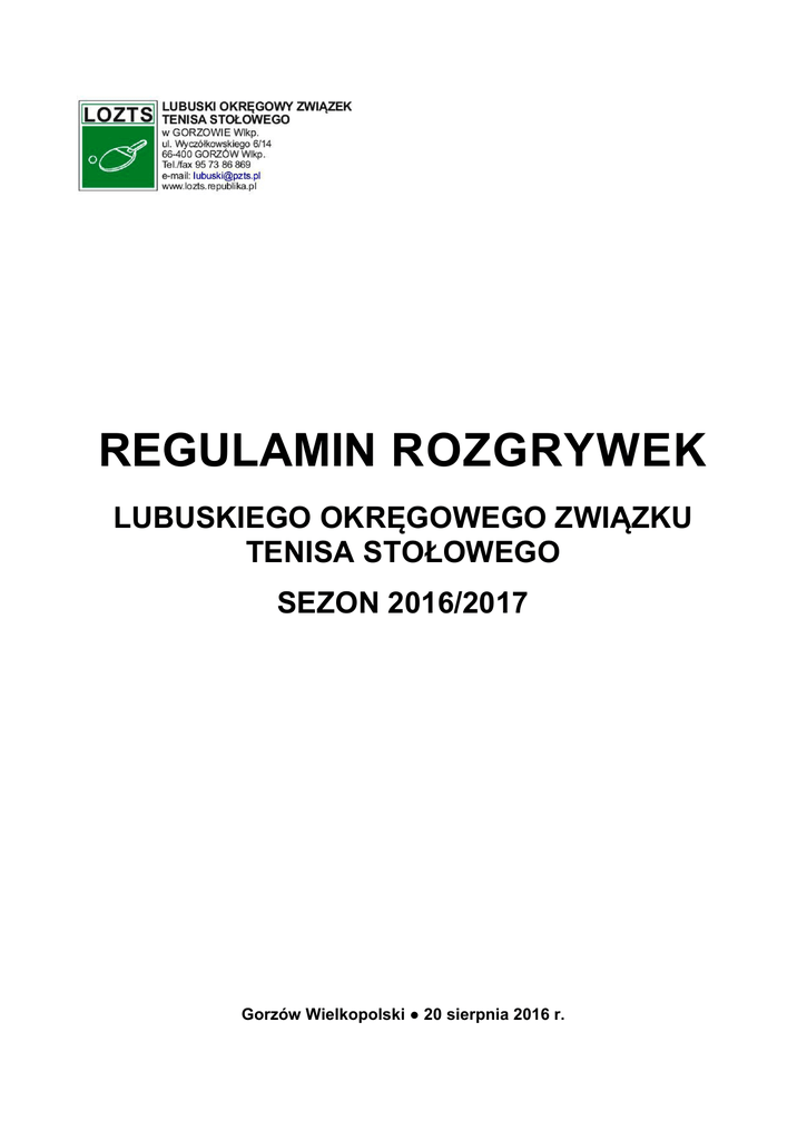 Regulamin rozgrywek LOZTS na sezon 2016/2017