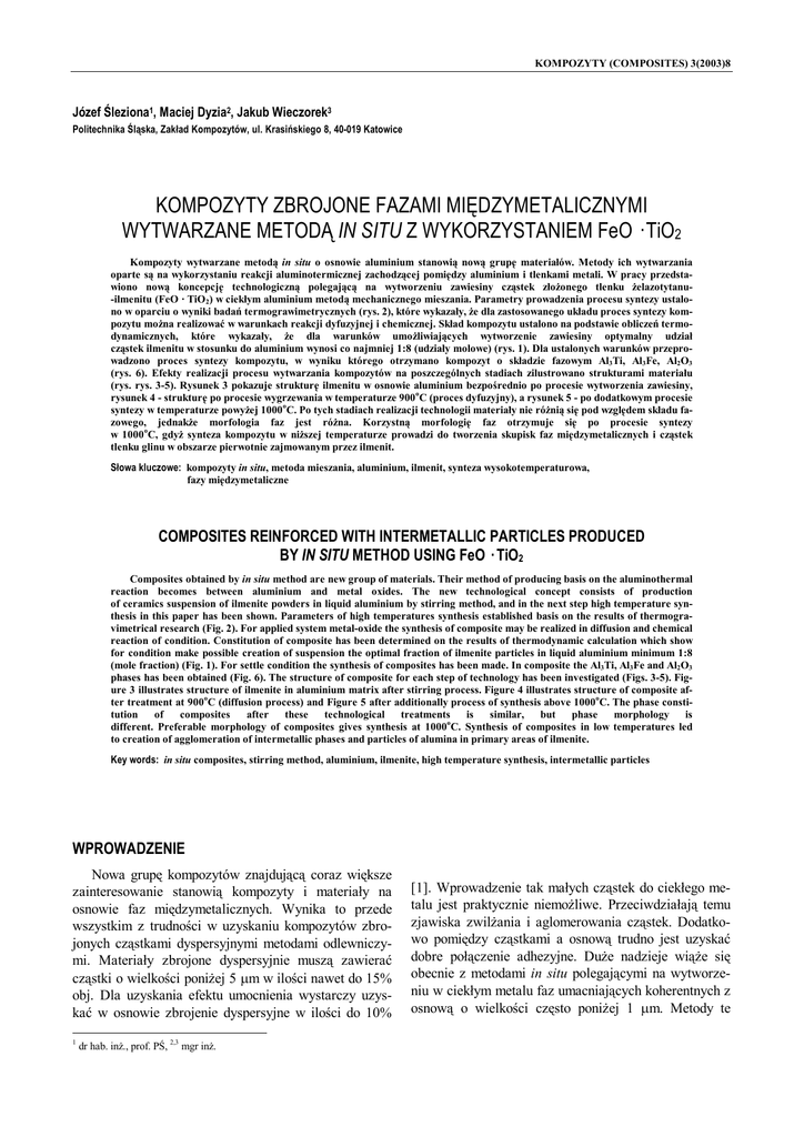 KOMPOZYTY ZBROJONE FAZAMI MIĘDZYMETALICZNYMI