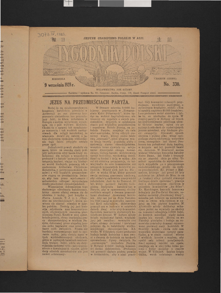 n.ecli>ktor i wyda.wca Ks. Wt Ostrowski. Harbin, Chiny. 106, Grand Prospect street.