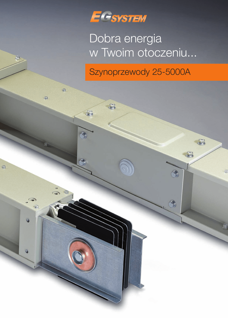 Dobra energia w Twoim otoczeniu... Szynoprzewody 25-5000A Szynoprzewody Szynoprzewody oferowane przez EG System to produkty będące wynikiem wielu lat prowadzonych badań oraz testów. Niezwykle zaawansowana technologia produkcji pozwoliła wytworzyć urządzenia o bardzo wysokich parametrach, spełniające oczekiwania nawet najbardziej wymagających klientów. Dołożyliśmy wszelkich starań, aby maksymalnie uprościć procedurę rozbudowy oraz konserwacji systemu, zachowując najwyższą jakość, przy wciąż konkurencyjnej cenie. Dzięki temu nasze produkty znajdują odbiorców na całym świecie. Najważniejsze korzyści stosowania szynoprzewodów oferowanych przez EG System: • Szynoprzewody posiadają stopień ochrony IP55. Istnieje również możliwość wykonania szynoprzewodów w stopniu IP68. • Obudowa odporna jest na korozję. • Materiał przewodników w naszych urządzeniach może być zarówno aluminiowy jak i miedziany. Obudowy wykonane są ze stali ocynkowanej lub aluminium i przekładają się na małe straty temperaturowe ale również relatywnie niewielkie wymiary i wagę. • Szynoprzewody zawierają w standardzie kompletny system mocowań • Liniowa rozszerzalność cieplna kompensowana na bloku łączeniowym • Pomiędzy szynoprzewodem a ścianą mogą być umieszczone certyfikowane bariery ogniowe. • Współczynnik znamionowy wynosi k=1, co gwarantuje jednakowe parametry techniczne szynoprzewodu bez względu na jego położenie. Zachęcamy do skorzystania z naszych materiałów dla projektantów, w których oprócz katalogów oraz kart katalogowych można znaleźć bloki 3D szynoprzewodów w formacie DWG, co ułatwi tworzenie szczegółowych projektów szynoprzewodów. EG System | www.egsystem.pl | [email protected] | 801 005 885 Szynoprzewody EG-BLP 25A-40A System szynoprzewodów EG-BLP jest przeznaczony głównie do zasilania odbiorów oświetleniowych oraz odbiorów małej mocy (silniki, gniazda wtyczkowe). Zakres prądowy wynosi 25 oraz 40A. Konstrukcja szynoprzewodów to obudowa z blachy galwanizowanej (IP55) z przewodnikami wykonanymi z Cu. Taka konstrukcja gwarantuje małe spadki napięć oraz mały ciężar jednostkowy. Linie z szynoprzewodów EG-BLP można budować wykorzystując: głowice zasilające, elementy proste 3m i 1m, elementy kątowe elastyczne, skrzynki odpływowe z zabezpieczeniem lub bez zabezpieczenia. Szynoprzewody dostępne są w konfiguracji: SZYNOPRZEWODY EG-BLP Prądy znamionowe (A): 25-40 Materiał przewodników: Miedź Materiał obudowy: Aluminium Stopień ochrony IP: 55 Znamionowy poziom izolacji (V): 750 2 przewodniki, [1P + N] + PE (obudowa), 4 przewodniki, [3P + N] + PE (obudowa), 6 przewodników, [3P + N] + [1P + N] + PE (obudowa), 8 przewodników, [3P + N] + [3P + N] + PE (obudowa), 12 przewodników, [3P + N] + [3P + N] + [3P + N] + PE (obudowa), 16 przewodników, [3P + N] + [3P + N] + [3P + N] + + [3P + N] + PE (obudowa). Zalety: przewodniki wykonane z wysokiej klasy miedzi, co gwarantuje mała wartość rezystancji oraz mały spadek napięcia, obudowa ze stali galwanizowanej o przekroju poprzecznym większym od przekroju przewodników fazowych, elementy proste 3m z 3 lub 6 gniazdami odpływowymi po jednej stronie, skrzynki odpływowe z możliwością montażu bezpieczników, z możliwością wyboru fazy, z dodatkowym przewodem, kompletny system mocowania w układzie pionowym oraz poziomym prowadzenia szynoprzewodów, szynoprzewody są produkowane zgodnie z normami i standardami: EN 60439-1, EN 60439-2. Parametry techniczne szynoprzewodów EG-BLP Parametr Prąd znamionowy (dla temperatury otoczenia 40°C) Znamionowe napięcie pracy–Ue Znamionowy poziom izolacji–Ui Częstotliwość pracy Stopień ochrony IP Liczba przewodników Materiał przewodników Materiał przewodnika ochronnego (PE obudowa) Znamionowy prąd (krótkotrwały) dla zwarcia 3P Znamionowy prąd (szczytowy) dla zwarcia 3P Rezystancja przewodu fazowego przy maksymalnej temperaturze nagrzania (Rt) Wartość 25 A 25 A 25 A 25 A 40 A 40 A 40 A 40 A 500 V 500 V 500 V 500 V 500 V 500 V 500 V 500 V 750 V 750 V 750 V 750 V 750 V 750 V 750 V 750 V 50/60 Hz IP55 1L+N+PE (obudowa) Miedź 50/60 Hz IP55 3L+N+PE (obudowa) Miedź 50/60 Hz IP55 4L+2N+PE (obudowa) Miedź 50/60 Hz IP55 6L+2N+PE (obudowa) Miedź 50/60 Hz IP55 1L+N+PE (obudowa) Miedź 50/60 Hz IP55 3L+N+PE (obudowa) Miedź 50/60 Hz IP55 4L+2N+PE (obudowa) Miedź 50/60 Hz IP55 6L+2N+PE (obudowa) Miedź Aluminium Aluminium Aluminium Aluminium Aluminium Aluminium Aluminium Aluminium 3,75 kA 3,75 kA 3,75 kA 3,75 kA 4,2 kA 4,2 kA 4,2 kA 4,2 kA 7,5 kA 7,5 kA 7,5 kA 7,5 kA 8,5 kA 8,5 kA 8,5 kA 8,5 kA 8,91 mΩ/m 8,91 mΩ/m 8,91 mΩ/m 8,91 mΩ/m 5,57 mΩ/m 5,57 mΩ/m 5,57 mΩ/m 5,57 mΩ/m Reaktancja przewodu fazowego przy maksymalnej temperaturze nagrzania (Xt) 0,155 mΩ/m 0,155 mΩ/m 0,155 mΩ/m 0,155 mΩ/m 0,143 mΩ/m 0,143 mΩ/m 0,143 mΩ/m 0,143 mΩ/m Impedancja fazowa 8,911 mΩ/m 8,911 mΩ/m 8,911 mΩ/m 8,911 mΩ/m 5,572 mΩ/m 5,572 mΩ/m 5,572 mΩ/m 5,572 mΩ/m 144 mm2 246 kcal/m 144 mm2 846 kcal/m 246 mm2 1392 kcal/m 246 mm2 1692 kcal/m 144 mm2 597 kcal/m 144 mm2 949 kcal/m 246 mm2 1546 kcal/m 246 mm2 1898 kcal/m Przekrój obudowy ochronnej Wytrzymałość energetyczna EG System | www.egsystem.pl | [email protected] | 801 005 885 Szynoprzewody EG-MB 63A-160A System szynoprzewodów małej mocy EG-MB jest przeznaczony głównie do zasilania odbiorów małej mocy, jak gniazda wtyczkowe, zasilanie bezpośrednie urządzeń (silniki, oświetlenie). Zakres prądowy wynosi 63, 100 oraz 160A. Dzięki zastosowaniu stali galwanizowanej do wykonania obudowy szynoprzewodu, uzyskano lekką oraz mocną konstrukcję. Standardowo stopień ochrony wynosi IP55. Linia produktów EG-MB obejmuje szeroką gamę elementów: głowice zasilające, elementy proste, elementy kątowe, wykorzystywane do zmiany kąta prowadzenia instalacji, oraz skrzynki odpływowe, które mogą być wyposażone w aparaturę modułową. W zależności