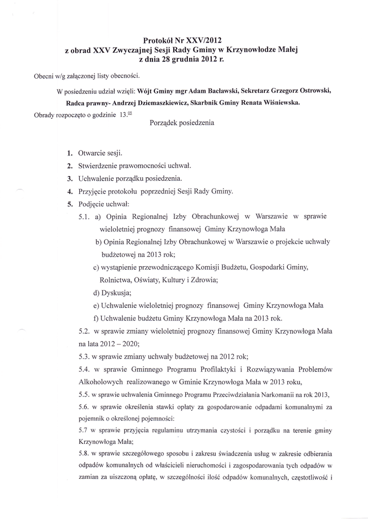 Protokół Nr XXV-2012 - URZąD GMINY W KRZYNOWłODZE