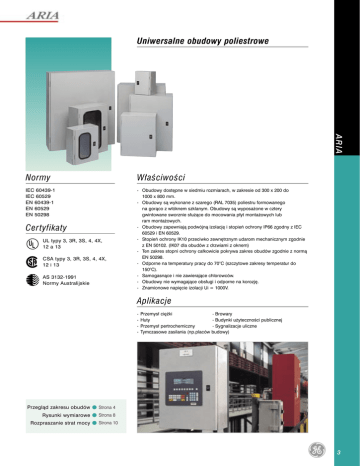 Właściwości Aplikacje Uniwersalne obudowy poliestrowe Normy