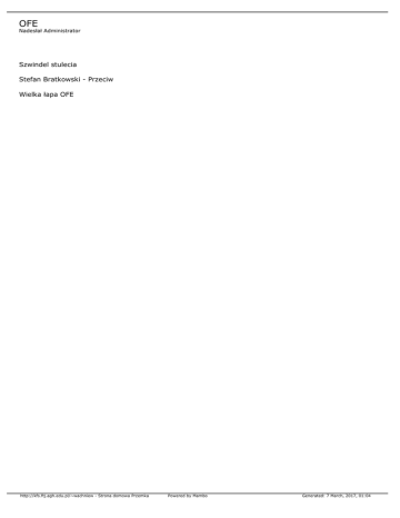 OFE Nadesłał Administrator Szwindel stulecia Stefan Bratkowski - Przeciw Wielka łapa OFE http://kfs.ftj.agh.edu.pl/~wachniew - Strona domowa Przemka Powered by Mambo Generated: 7 March, 2017, 01:04