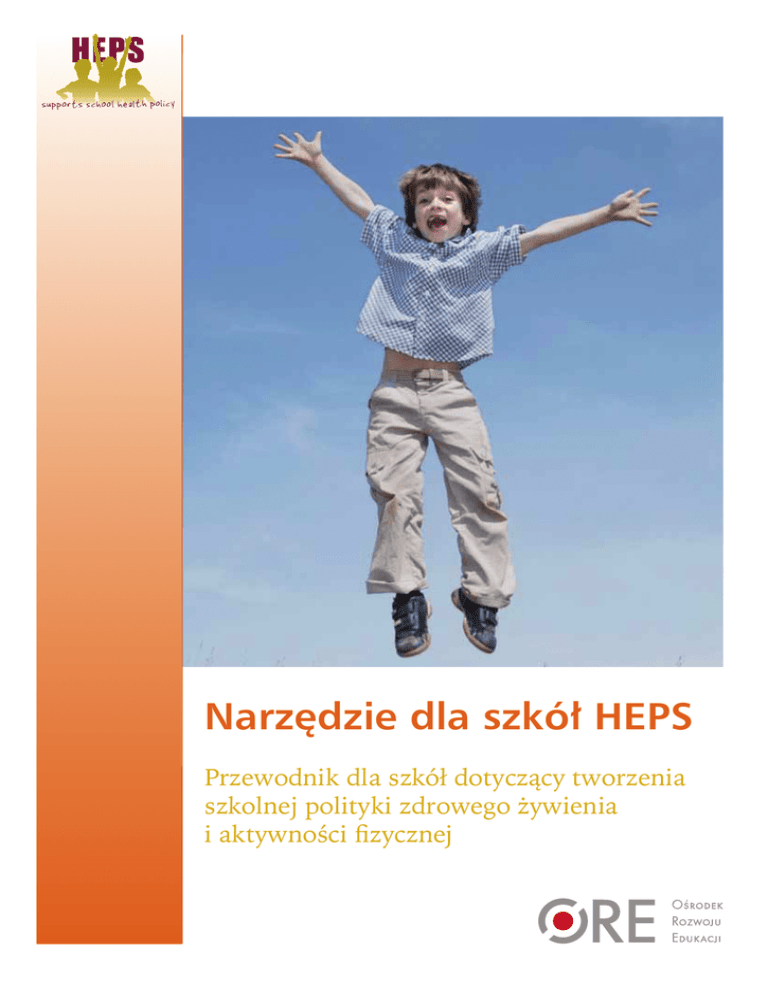 Narzędzie dla szkół HEPS Przewodnik dla szkół dotyczący tworzenia szkolnej polityki zdrowego żywienia i aktywności fizycznej Tytuł oryginału HEPS Tool for Schools A Guide for School Policy Development on Healthy Eating and Physical Activity Autorzy: Venka Simovska Ph. D. Kevin Dadaczynski M. Sc. Nina Grieg Viig M. Sc. Hege E. Tjomsland M. Sc. Sue Bowker M. Sc. Barbara Woynarowska Ph. D. Silvia de Ruiter M. Sc. Goof Buijs M. Sc. Podziękowania E. Flaschberger (Ludwig Boltzmann Institute Health Promotion Research, Austria), S. Nic Gabhainn (National University of Ireland, Galway, Ireland), A. Jociute (State Environmental Health Centre, Lithuania), A. Lee (NHS Health Scotland), P. Paulus (Leuphana University Lüneburg, Germany), D. Piëtte (Universite Libre de Bruxelles, Belgium), K. Sokou (Institute of Child Health, Greece), N. de Vries (University Maastricht, the Netherlands). Pragniemy podziękować członkom Rady Naukowej HEPS za ich komentarze i wkład pracy. Data publikacji: kwiecień 2010 Publikacja może być zamówiona za pośrednictwem NIGZ. Kod zamówienia: OJ072133 ISBN: 9789069282619 Publikacja może być zamówiona pod adresem: Customer service NIGZ, P.O. Box 500, 3440 AM Woerden, The Netherlands. Publikację można pobrać bezpłatnie ze strony: www.hepseurope.eu Finansowanie Publikacja jest częścią projektu HEPS, który otrzymał dofinansowanie z Unii Europejskiej w ramach Programu Zdrowia Publicznego. Projekt HEPS jest współfinansowany przez ZonMw (The Netherlands Organisation for Health Research and Development). © NIGZ, 2009. Żadna część tej publikacji nie może być powielana w formie folio czy cyfrowej bez pisemnej zgody. Prośby związane z reprodukcją zdjęć lub tekstu powinny być kierowane na adres: Uitgeverij NIGZ – P.O. Box 500 – 3440 AM Woerden – The Netherlands – e-mail: [email protected] Tłumaczenie i opracowanie: Katarzyna Stępniak Copyright © dla wydania polskiego: Ośrodek Rozwoju Edukacji, Warszawa 2010. Skład Jan Jacek Swianiewicz Druk Wydawnictwo Naukowe Instytutu Technologii Eksploatacji — Państwowego Instytutu Badawczego ISBN 978-83-6236-44-4 NARZĘDZIE DLA SZKÓŁ HEPS Przewodnik dla szkół dotyczący tworzenia szkolnej polityki zdrowego żywienia i aktywności fizycznej Venka Simovska Duńska Szkoła Edukacji, Uniwersytet Aarhus (Danish School of Education, Aarhus University), Dania Kevin Dadaczynski Uniwersytet Leuphana (Leuphana Universiy), Niemcy Nina Grieg Viig Uniwersytet w Bergen (University of Bergen), Norwegia Hege E. Tjomsland Uniwersytet w Bergen (University of Bergen), Norwegia Sue Bowker Walijskie Zgromadzenie Rządowe (Welsh Assembly Government), Walia Barbara Woynarowska Uniwersytet Warszawski (Warsaw University), Polska Silvia de Ruiter Holenderski Instytut Promocji Zdrowia (Netherlands Institute for Health Promotion NIGZ), Holandia Goof Buijs Holenderski Instytut Promocji Zdrowia (Netherlands Institute for Health Promotion NIGZ), Holandia Warszawa 2010 Ośrodek Rozwoju Edukacji S pis treści Przedmowa do wydania polskiego................................................................5 Wprowadzenie..........................................................................................................7 Rozdział 1. Zanim zaczniecie....................................................................................11 1.1 Kto powinien tworzyć szkolną politykę?.............................................................11 1.2 Jak zapewnić dobre warunki do tworzenia szkolnej polityki?.............................11 Rozdział 2. Jakie koncepcje są podstawą do tworzenia polityki?..............................13 2.1 Koncepcja zdrowia...............................................................................................13 2.2 Koncepcja zdrowiego żywienia............................................................................14 2.3 Koncepcja aktywności fizycznej...........................................................................14 2.4 Potrzeba spójnych wartości.................................................................................15 Rozdział 3. W jaki sposób tworzyć całościową politykę szkoły w zakresie zdrowego żywienia i aktywności fizycznej?...............................................................17 3.1 Faza 1: zapewnienie warunków wstępnych do tworzenia szkolnej polityki........17 3.1.1 Zapewnienie wsparcia i zaangażowanie się dyrekcji szkoły.........................18 3.1.2 Budowanie zrozumienia w środowisku szkolnym.......................................18 3.1.3 Stworzenie grupy roboczej i wybór koordynatora........................................18 3.1.4 Zapewnienie warunków do tworzenia szkolnej polityki..............................19 3.2 Faza 2: analiza istniejącej polityki i działań.........................................................19 3.3 Faza 3: opracowanie i opis szkolnej polityki........................................................20 3.3.1 Ustalenie priorytetów i sformułowanie celów.............................................20 3.3.2 Projekt polityki.............................................................................................20 3.3.3 Podsumowanie.............................................................................................20 3.4 Faza 4: upowszechnianie i wdrażanie..................................................................21 3.4.1 Upowszechnianie.........................................................................................21 3.4.2 Opracowanie strategii wdrażania polityki....................................................21 3.4.3 Wdrożenie i integracja polityki z codzienną praktyką szkoły......................21 3.5 Faza 5: monitorowanie, ewaluacja i uczenie się..................................................22 Rozdział 4. Przykłady ze szkół służące inspiracji......................................................23 ZAŁĄCZNIK 1. Krótkie narzędzie d