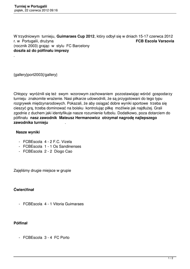 Turniej w Portugalii - Aktualności FCB Escola Varsovia