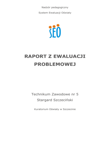 Nadzór pedagogiczny System Ewaluacji Oświaty RAPORT Z EWALUACJI PROBLEMOWEJ Technikum Zawodowe nr 5 Stargard Szczeciński Kuratorium Oświaty w Szczecinie Wstęp Prezentowany raport jest rezultatem ewaluacji zewnętrznej przeprowadzonej w szkole przez wizytatorów do spraw ewaluacji. Ewaluacja zewnętrzna polega na zbieraniu i analizowaniu informacji na temat funkcjonowania szkoły w obszarach wyznaczonych przez wymagania państwa: 1. Szkoła lub placówka realizuje koncepcję pracy ukierunkowaną na rozwój uczniów. 2. Procesy edukacyjne są zorganizowane w sposób sprzyjający uczeniu się. 3. Uczniowie nabywają wiadomości i umiejętności określone w podstawie programowej. 4. Uczniowie są aktywni. 5. Kształtowane są postawy i respektowane normy społeczne. 6. Szkoła lub placówka wspomaga rozwój uczniów, z uwzględnieniem ich indywidualnej sytuacji. 7. Nauczyciele współpracują w planowaniu i realizowaniu procesów edukacyjnych. 8. Promowana jest wartość edukacji. 9. Rodzice są partnerami szkoły lub placówki. 10. Wykorzystywane są zasoby szkoły lub placówki oraz środowiska lokalnego na rzecz wzajemnego rozwoju. 11. Szkoła lub placówka, organizując procesy edukacyjne, uwzględnia wnioski z analizy wyników sprawdzianu, egzaminu gimnazjalnego, egzaminu maturalnego, egzaminu potwierdzającego kwalifikacje zawodowe i egzaminu potwierdzającego kwalifikacje w zawodzie oraz innych badań zewnętrznych i wewnętrznych. 12. Zarządzanie szkołą lub placówką służy jej rozwojowi. Ewaluacja ma także na celu ustalenie, czy szkoła spełnia badane wymagania zawarte w rozporządzeniu Ministra Edukacji Narodowej z dnia 6.08.2015 r. Szkoła może spełniać wymagania na poziomie podstawowym i podejmować działania z wysokiego poziomu wymagania. Technikum Zawodowe nr 5 2/38 Opis metodologii Badanie zostało zrealizowane w dniach 16-11-2015 - 20-11-2015 przez zespół wizytatorów ds. ewaluacji, w skład którego weszli: Agnieszka Stroynowska, Iwona Matyjanowska. Badaniem objęto 73 uczniów (ankieta i wywiad grupowy), 103 rodziców (ankieta i wywiad grupowy) i 23 nauczycieli (ankieta i wywiad grupowy). Przeprowadzono wywiad indywidualny z dyrektorem placówki, a także obserwacje lekcji i analizę dokumentacji. Na podstawie zebranych danych został sporządzony raport, który obejmuje podstawowe obszary działania szkoły. Wyjaśnienie skrótów dla narzędzi: OZ - Akusz obserwacji zajęć AD - Kwestionariusz ankiety dla dyrektora/dyrektorki szkoły AN - Kwestionariusz ankiety dla nauczycieli AR - Kwestionariusz ankiety dla rodziców AMD - Kwestionariusz ankiety dla uczniów "Mój dzień" AMS - Kwestionariusz ankiety dla uczniów "Moja szkoła" APW - Kwestionariusz ankiety poewaluacyjnej dla wizytatora ADZ - Kwestionariusz badania "Analiza danych zastanych" WN - Scenariusz wywiadu grupowego z nauczycielami WR - Scenariusz wywiadu grupowego z rodzicami WD - Scenariusz wywiadu z dyrektorem/dyrektorką szkoły WNPO - Scenariusz wywiadu z nauczycielem po obserwacji WNO - Scenariusz wywiadu z zespołem nauczycieli uczących w jednym oddziale Technikum Zawodowe nr 5 3/38 Obraz placówki Dyrektor Technikum Zawodowego Nr 5 w Zespole Szkół im. Tadeusza Tańskiego w Stargardzie Szczecińskim ofertę kształcenia zawodowego dostosowuje do potrzeb i zainteresowań młodzieży. Największą popularnością cieszą się takie zawody, jak technik pojazdów samochodowych, technik architektury krajobrazu, technik żywienia, usług gastronomicznych oraz technik ochrony środowiska. Trendy w zdawalności egzaminów potwierdzających kwalifikacje w zawodzie w trzyletnim cyklu nauczania wskazują na wzrost zdawalności w zawodzie technik ochrony środowiska oraz w zawodzie technik żywienia i gospodarstwa domowego. W zakresie przedmiotów ogólnokształcących widoczna jest w latach 2013-2015 na egzaminie maturalnym na poziomie podstawowym z matematyki i języka angielskiego rosnąca linia trendu. Nauczyciele realizują podstawę programową uwzględniając osiągnięcia uczniów z poprzedniego etapu edukacyjnego. Prowadzą diagnozy z języka polskiego, języków obcych, matematyki z wykorzystaniem formuły egzaminu maturalnego. Szkoła organizuje dla uczniów indywidualne dodatkowe zajęcia dydaktyczno-wyrównawcze, a dla maturzystów dodatkowe zajęcia z języka polskiego, matematyki, języków obcych i przedmiotów dodatkowych. Uczniowie ze 100 % frekwencją są przez nauczycieli nagradzani. Nauczyciele kładą nacisk na indywidualizację pracy w czasie zajęć lekcyjnych, zwiększają ilość zadań rozwijających czytanie i logiczne rozumowanie, zadają uczniom pytania problemowe, a także pracują metodami aktywnymi, w tym metodą projektu oraz organizują pracę zespołową i w małych grupach. Nauczyciele przedmiotów ogólnokształcących ograniczają formułę testu na rzecz samodzielnego uzupełniania. Uczniowie mają za zadanie odpowiadać na pytania otwarte, co zmusza ich do samodzielnego opisania zagadnienia, czy też wykonania obliczeń rachunkowych. Podczas zajęć lekcyjnych nauczyciele monitorują pracę uczniów sprawdzając, czy przekazywane treści właściwie zrozumieli oraz w jaki sposób uczniowie wykonują zadania. Zawsze są otwarci na pytania uczniów i stwarzają im możliwość zadawania pytań. Nauczyciele obserwują uczniów w trakcie zajęć lekcyjnych, przerw, wyjść, wyjazdów i wycieczek. Utrzymują stały kontakt z rodzicami uczniów, szczególnie tych, którzy stwarzają problemy wychowawcze. Szczególną opieką otaczają uczniów z wysoką absencją szkolną. Rozpoznają na bieżąco możliwości psychofizyczne młodzieży, potrzeby rozwojowe, sposoby uczenia się oraz sytuację społeczną każdego ucznia. Uczniom z uwagi na ich trudną sytuację społeczną pomagają w uzyskaniu stypendiów socjalnych. Nauczyciele dbają o atmosferę i właściwe relacje międzyludzkie, umiejętnie pomagają uczniom, wskazują odpowiednie wzorce do naśladowania 