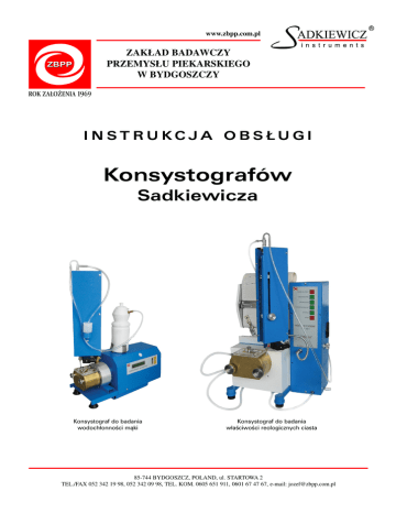 www.zbpp.com.pl ZAK£AD BADAWCZY PRZEMYS£U PIEKARSKIEGO W BYDGOSZCZY INSTRUKCJA OBSŁUGI Konsystografów Sadkiewicza Konsystograf do badania wodochłonności mąki Konsystograf do badania właściwości reologicznych ciasta 85-744 BYDGOSZCZ, POLAND, ul. STARTOWA 2 TEL./FAX 052 342 19 98, 052 342 09 98, TEL. KOM. 0605 651 911, 0601 67 47 67, e-mail: [email protected] I N S T R U K C J A Wstęp O B S Ł U G I W praktyce piekarskiej potwierdzono, że nie z każdej mąki pszennej uzyskuje się dobre ciasto nadające się do wypieku pieczywa. Wpływ na powyższe ma m.in. ilość i jakość glutenu, jakość skrobi, a nawet stopień granulacji mąki co wpływa na wodochłonność mąki i reologiczne (fizyczne) właściwości ciasta. Poznanie takich właściwości ułatwia: • • • • w w w w stacjach hodowli zbóż klasyfikowanie odmian ziarna pszenicy na cele piekarskie, młynach komponowanie mieszanek mąk na potrzeby piekarstwa, dużych piekarniach kierowanie procesami technologicznymi, placówkach naukowych prowadzenie prac badawczych. Urządzenia i metoda Do określania wodochłonności, zdolności wiązania wody przez mąkę opracowano specjalny konsystograf na 25 g mąki z możliwością automatycznego dozowania wody w czasie tworzenia (miesienia) ciasta do konsystencji 500 jednostek „S“ z jednoczesnym odczytem danych na czytniku cyfrowym wodochłonności mąki w % oraz konsystograf uniwersalny na 50 g mąki zarówno do określania wodochłonności mąki oraz pomiaru i rejestracji oporów, jakie stawia ciasta tworzone z mąki i wody w procesie miesienia z równoczesną rejestracją charakterystycznych wstęg wykresów z których można określić: • • • • • • • wodochłonność mąki w % (spotykane różnice od 47 - 67 %), konsystencję ciasta przy 500 jednostek „S“ lub inną użyteczną na poszczególne asortymenty pieczywa, czas rozwoju ciasta (od rozpoczęcia dozowania wody do pojawienia się oznak zmniejszania konsystencji), stałość ciasta, rozmiękczenie ciasta, aktywność enzymatyczną, odporność lub podatność fermentacyjną. Spotykane wstęgi konsystograficzne (farinograficzne) wykresów mąki www.zbpp.com.pl Określanie wodochłonności • przygotowanie konsystografu: włączenie wtyczki do gniazda na 230 V • napełnienie biurety wodą destylowaną • odczekanie do czasu ustabilizowania się temperatury 30 °C (wskazania na czytniku) • odważenie 25 g badanej mąki z dokładnością do 0,01 g • przesypanie próbki mąki do dzieży • zamknięcie dzieży pokrywą • skierowanie końcówki biurety nad pokrywką • uruchomienie urządzenia celem nagrzania mąki w czasie ok. 1 min. www.zbpp.com.pl • zaprogramowanie dozowania i automatycznego określania wodochłonności oraz przycisk „START“ • w toku oznaczania łopatką wprowadzić odłożoną mąkę lub ciasto ze ścian dzieży do środka miesideł • odczekać (3 - 4 minuty) do czasu pojawienia się wyniku analizy na czytniku • dosypać mąki (ok. 5 g) pszennej lub kukurydzianej w celu ułatwienia czyszczenia dzieży • wyłączyć konsystograf przyciskiem „WYŁ.“ oraz z sieci • oczyścić dzieżę i miesidła z ciasta • osuszyć całość i ponownie zestawić (miesidło prawe nie pasuje w otwór lewy i odwrotnie) www.zbpp.com.pl Uwagi końcowe • w toku działania konsystografu nie podnosić przykrywki (następuje wyłączenie urządzenia i programu) • dbać o czystość miesideł i dzieży • uważać, aby w toku nagarniania resztek mąki lub ciasta nie wpadła łopatka do dzieży (nastąpi uszkodzenie miesiarki droga naprawa) • praca w laboratorium nie ogrzanym może wpływać niekorzystnie na wyniki analizy prowadzonej w temp. 30 °C. • zabiegać o mąki o wysokich parametrach wodochłonności - korzyści ekonomiczne Przykład I Ze 100 kg mąki o wodochłonności 47% można uzyskać 147 kg ciasta o konsystencji 500 j. konsystograficznych lub 150 kg ciasta o konsystencji 350 j. konsystograficznych. Przykład II Ze 100 kg mąki o wodochłonności 62% można uzyskać 162 kg ciasta o konsystencji 500 j. konsystograficznych lub 165 kg ciasta o konsystencji 350 j. konsystograficznych. Określanie właściwości reologicznych na konsystografie uniwersalnym • przygotować urządzenie i sprawdzić prawidłowość zestawienia dzieży • sprawdzić skuteczność zapisu grafionu • napełnić wodą biuretę automatyczną • podłączyć dzieżę z ultratermostatem na 30 °C • uruchomić próbnie konsystograf przyciskiem „START“ www.zbpp.com.pl • odważyć 50 g maki i wsypać do dzieży konsystografu • ustawić końcówkę biurety nad dzieżą (prawy dolny róg) • ustawić suwak biurety na wartość wodochłonności uzyskanej wcześniej • po 1 min. mieszania mąki włączyć przycisk „REJESTRATOR“ i „WYKRES“ • zapis wykresu prowadzić przez 10 min. • wsypać do dzieży ok. 10 g mąki (pszennej lub kukurydzianej) w celu ułatwienia czyszczenia dzieży • wyjąć ciasto i oczyścić dzieżę • osuszyć całość i ponownie zestawić. www.zbpp.com.pl