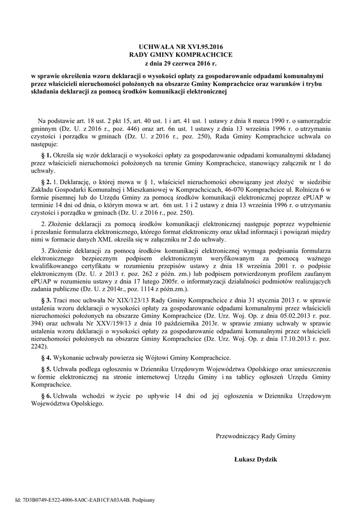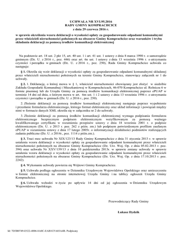 czystości i porządku w gminach (Dz. U. z 2016 r., poz. 250), Rada Gminy Komprachcice uchwala co