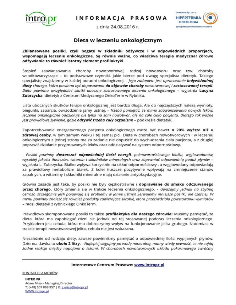 (inf. prasowa PDF) - Dieta w leczeniu onkologicznym