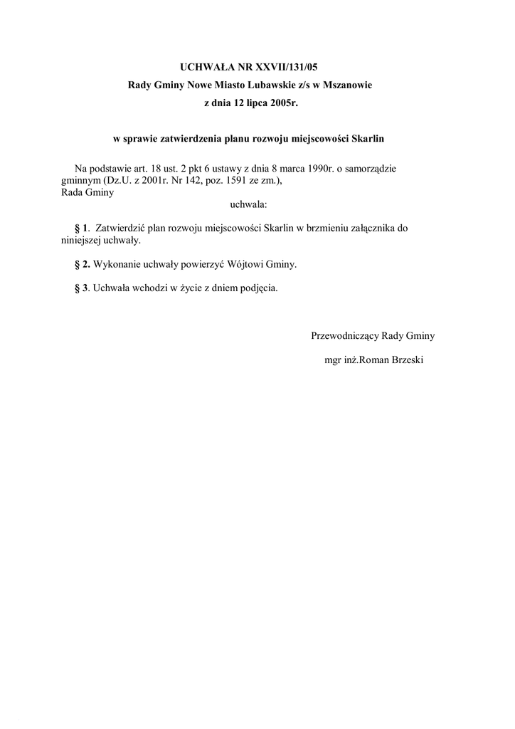 UCHWAŁA NR XXVII/131/05 Rady Gminy Nowe Miasto Lubawskie z