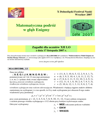 wirnikiem szyfrującym oraz walcem odwracającym. Wiadomość x będącą ciągiem znaków alfabetu