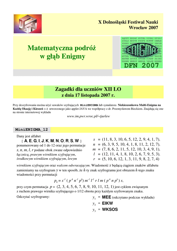 Odczytać tajną depeszę przechwyconą po wykładzie o Enigmie w XII LO we Wrocławiu