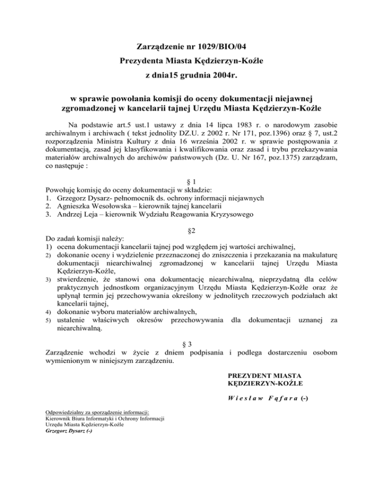 Zarz¹dzenie nr 1029/BIO/04 - Urząd Miasta Kędzierzyn