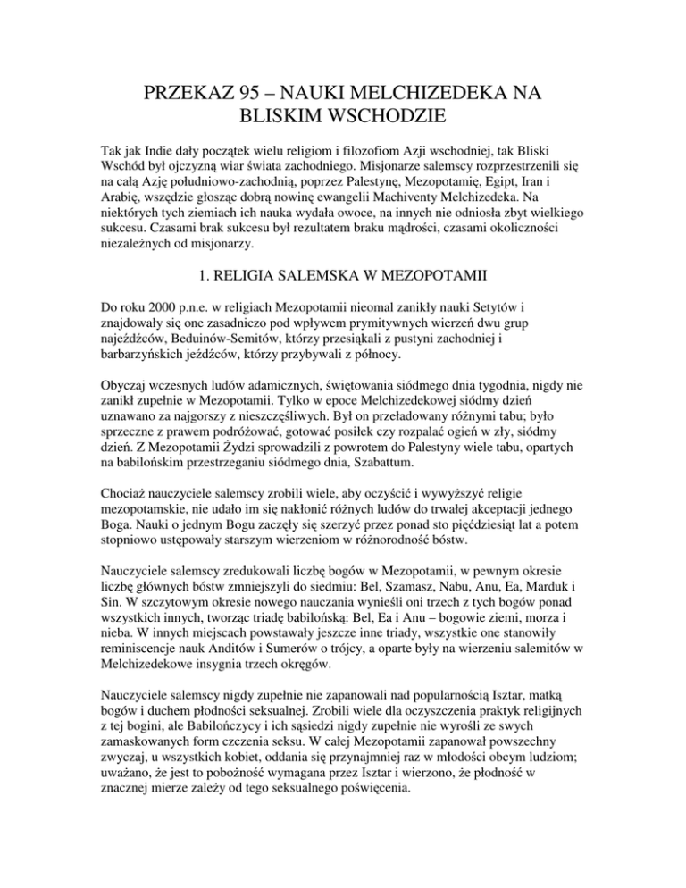 PRZEKAZ 95 Œ NAUKI MELCHIZEDEKA NA BLISKIM WSCHODZIE