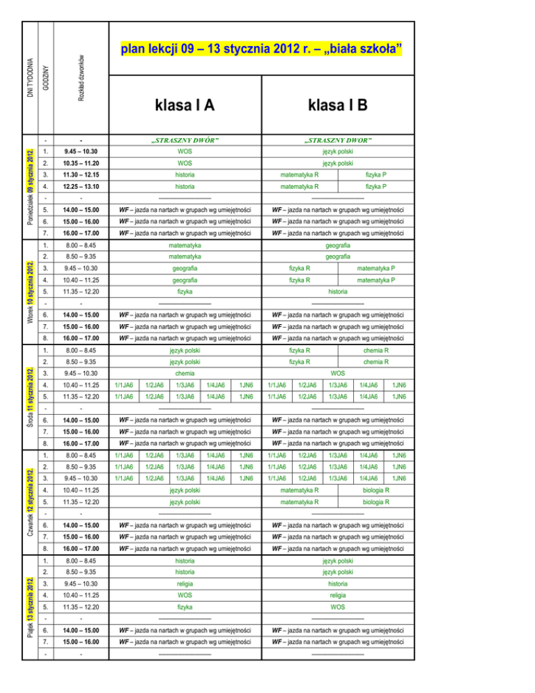 12 01 09-13 plan lekcji - Biała Szkoła - Zieleniec