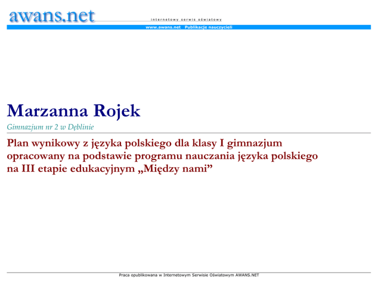 Plan wynikowy z języka polskiego dla klasy I gimnazjum