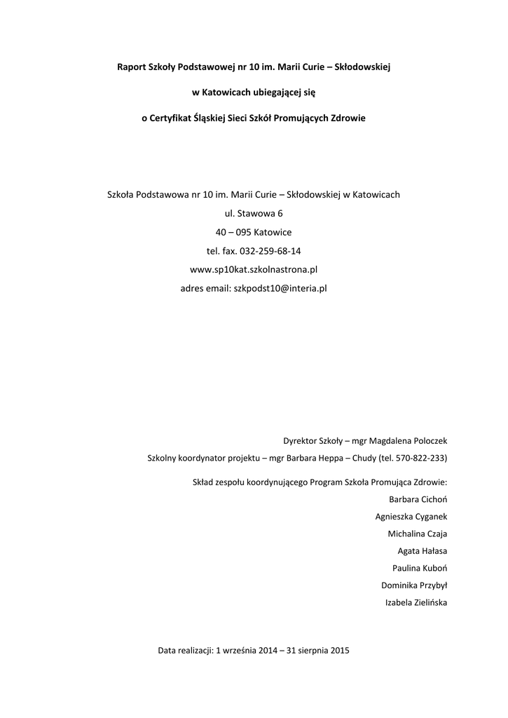 raport - 3.9Mb - Szkoła Podstawowa nr 10 w Katowicach