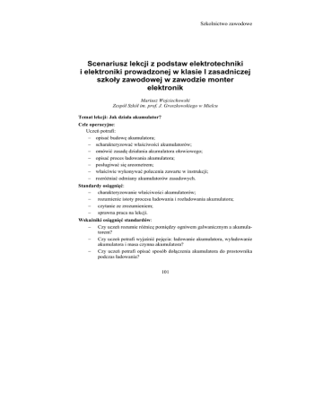 Scenariusz lekcji z podstaw elektrotechniki i elektroniki prowadzonej