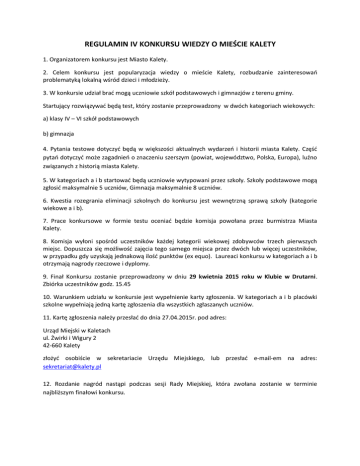 REGULAMIN IV KONKURSU WIEDZY O MIEŚCIE KALETY