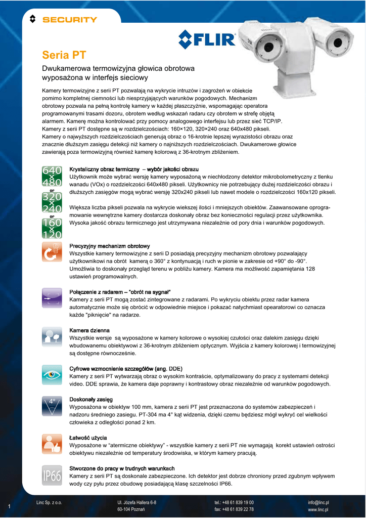 SECURITY 6HULD37 640 x 480 or 320 x 240 or 160 x 120 4° IP66 /LQF6S]RR 8O-y]HID+DOOHUD 3R]QDĔ WHO ID[ LQIR#OLQFSO ZZZOLQFSO IP CONTROL SOFTWARE . 3:3ROH:LG]HQLDNDPHU\+KRU\]RQWDOQLHSR]LRP9ZHUW\NDOQLHSLRQ /LQF6S]RR 8O-y]HID+DOOHUD 3R]QDĔ WHO ID[ LQIR#OLQFSO ZZZOLQFSO SECURITY /LQF6S]RR 8O-y]HID+DOOHUD 3R]QDĔ WHO ID[ LQIR#OLQFSO ZZZOLQFSO 6HULD37 6SHF\ILNDFMDWHFKQLF]QD 6HULD37VSHF\ILNDFMDGRVWĊSQ\FKZHUVML =DVWU]HJDP\VRELHSUDZRGR]PLDQ\VSHF\ILNDFMLEH]SRZLDGDPLDQLD :\PLDU\LZDJDPRJąUyĪQLüVLĊQLH]QDF]QLHRGSRGDQ\FK /LQF6S]RR 8O-y]HID+DOOHUD 3R]QDĔ WHO ID[ LQIR#OLQFSO ZZZOLQFSO
