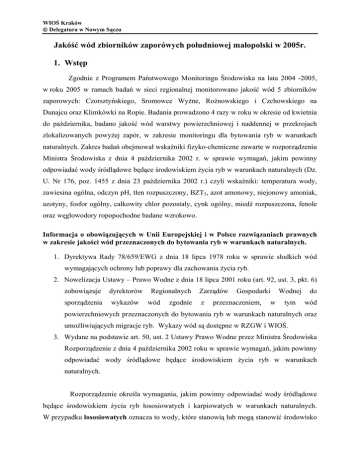 Jakość wód zbiorników zaporowych południowej Małopolski w 2005