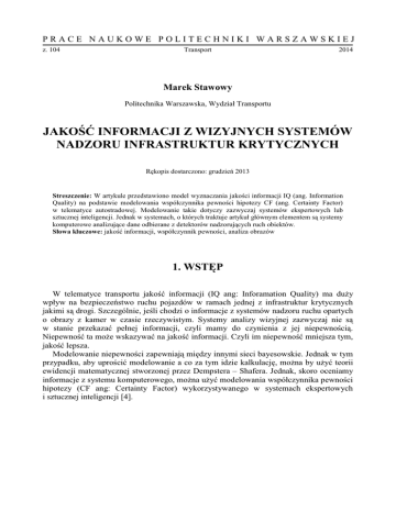 Jakość informacji z wizyjnych systemów nadzoru infrastruktur