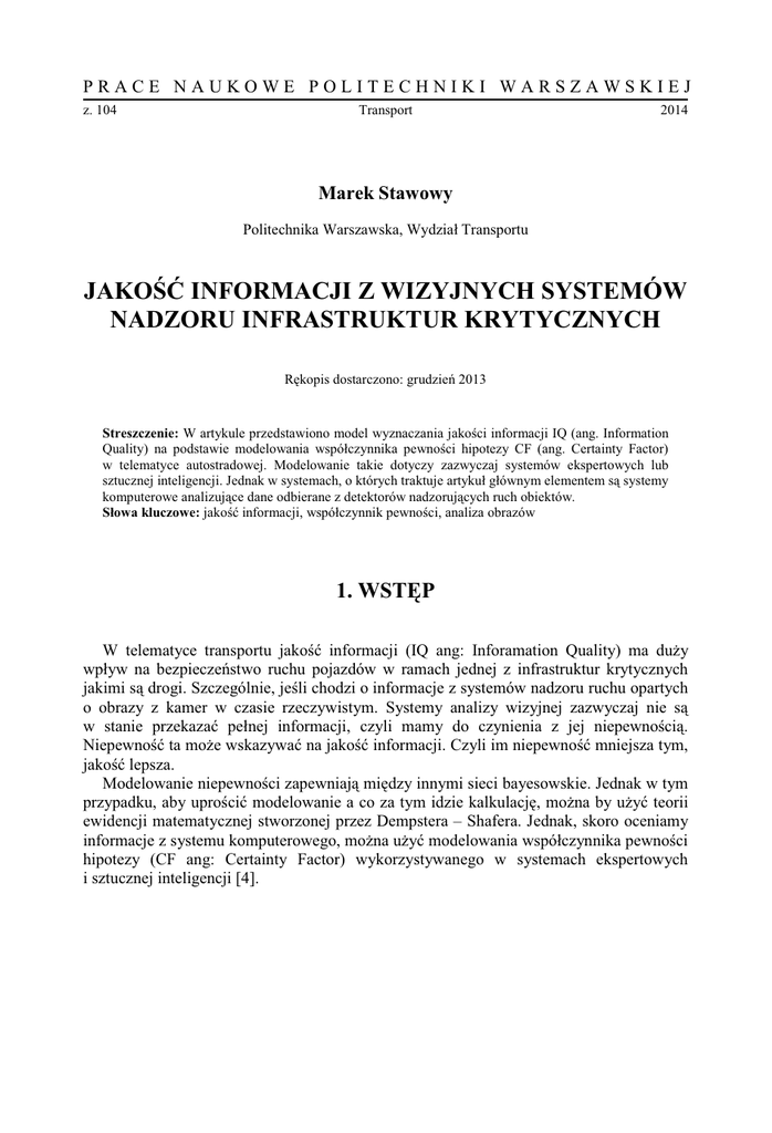 PRACE NAUKOWE POLITECHNIKI WARSZAWSKIEJ