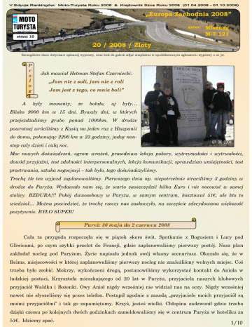 20 / 2008 / Zloty „Europa Zachodnia 2008” - MOTO